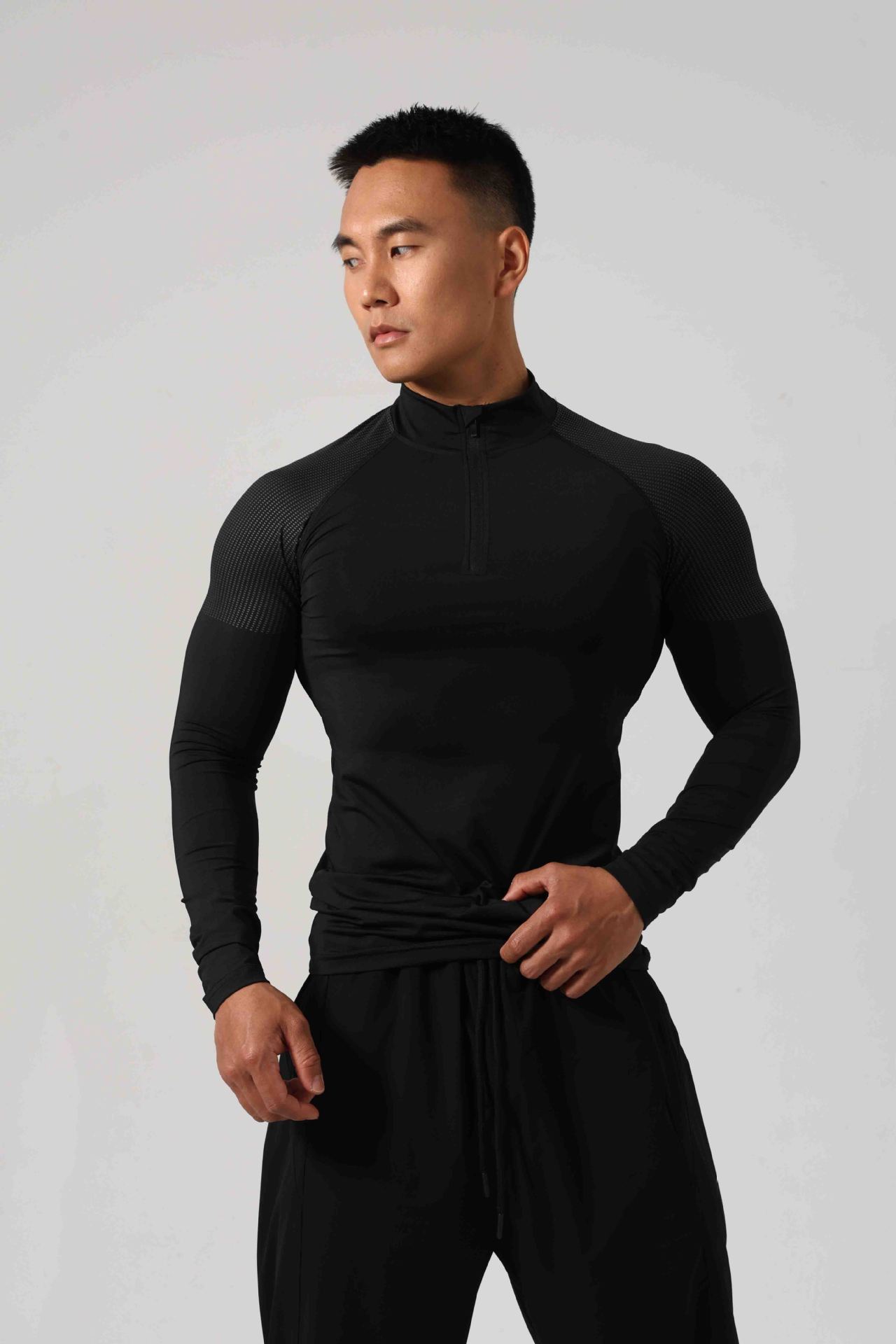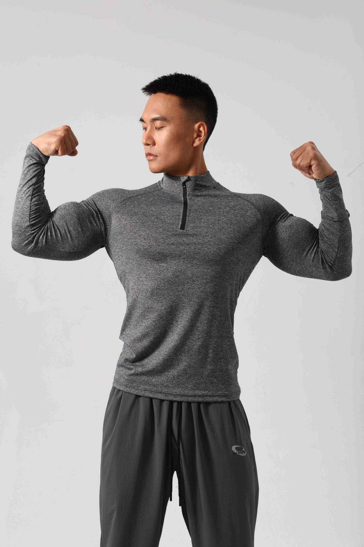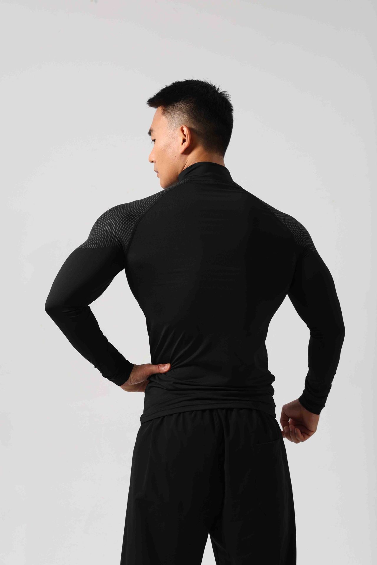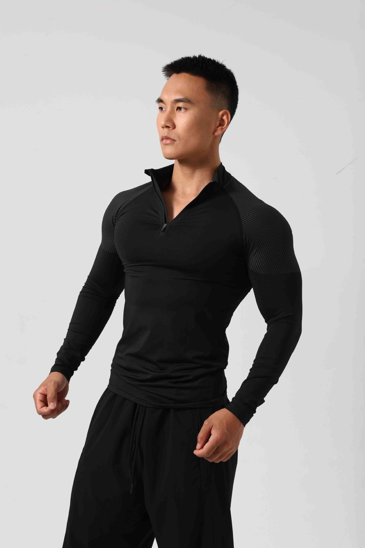 秋季无缝显大健身衣弹力速干运动半拉链长袖透气修身训练服上衣男