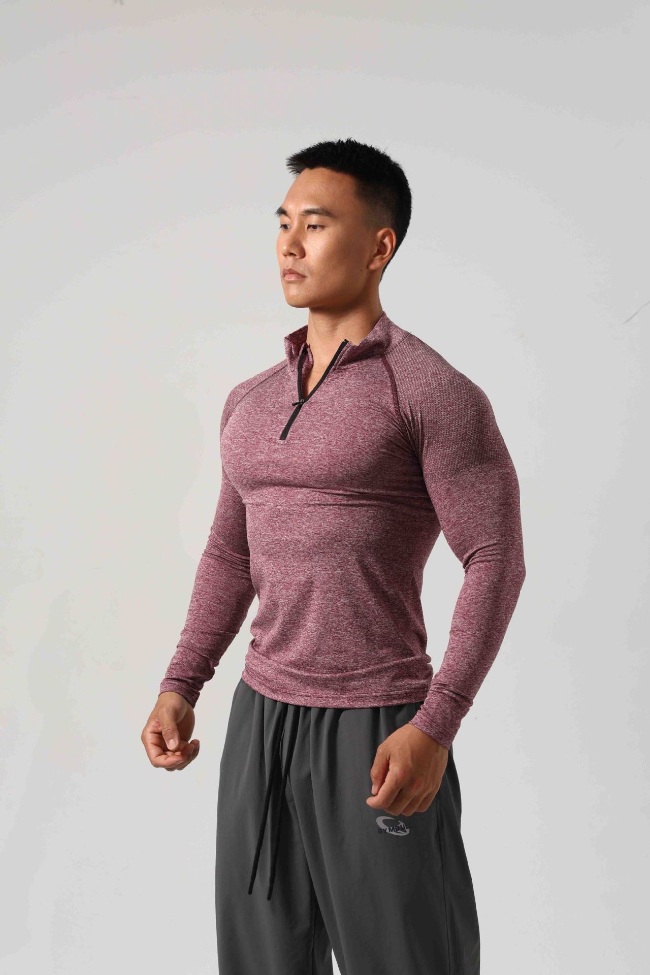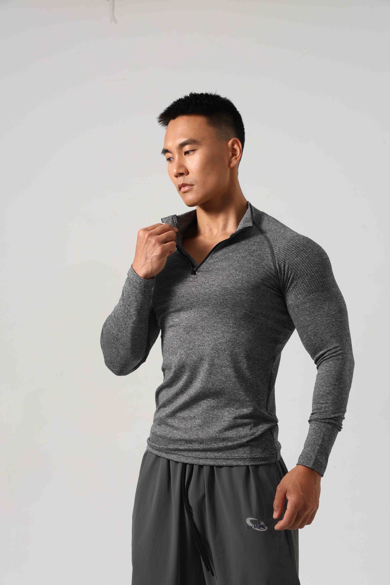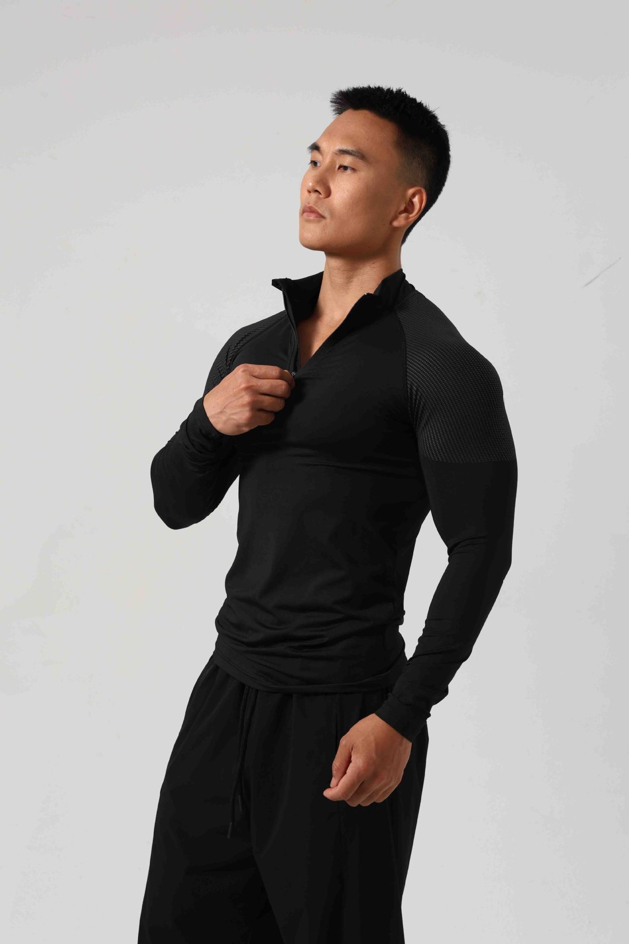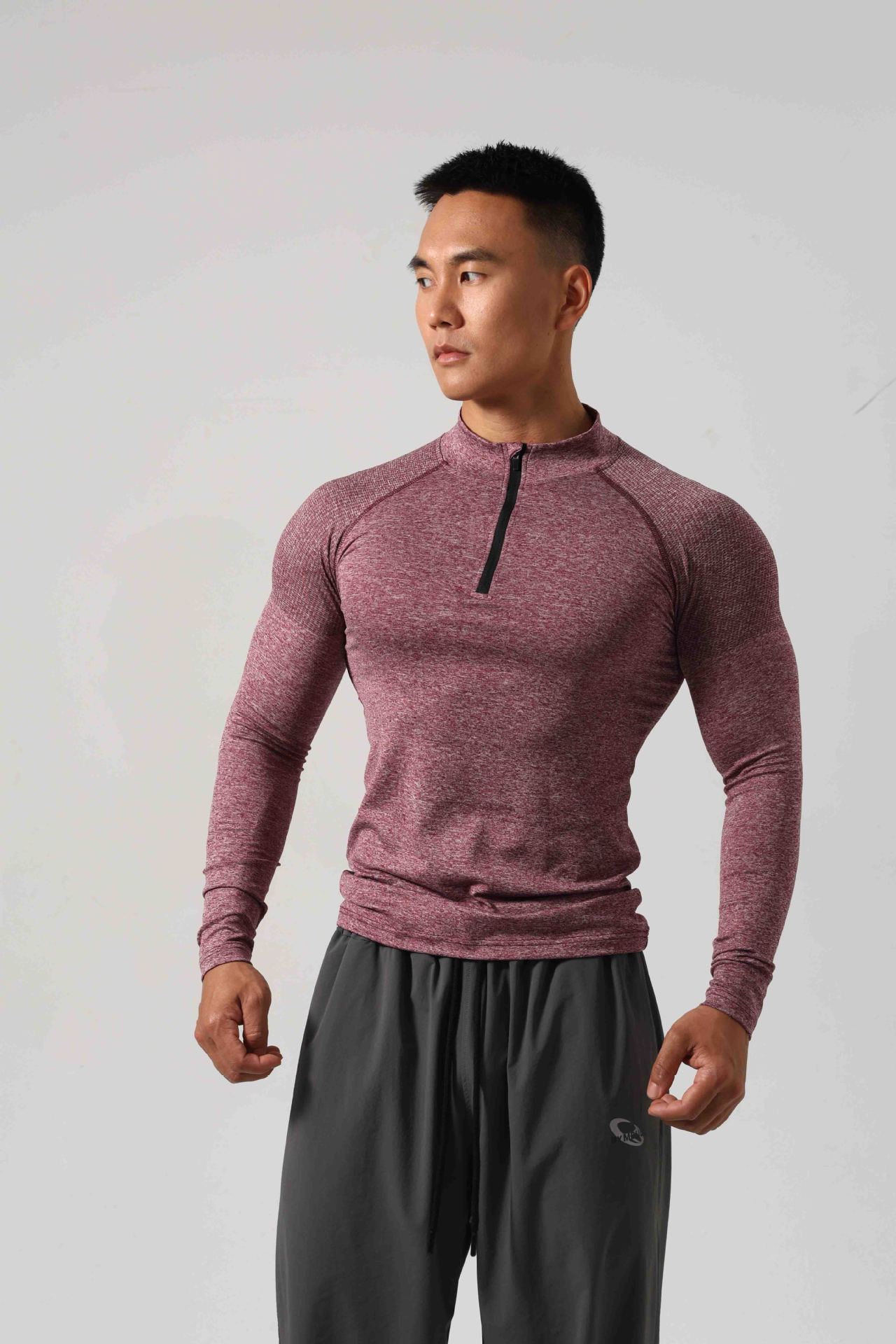 秋季无缝显大健身衣弹力速干运动半拉链长袖透气修身训练服上衣男