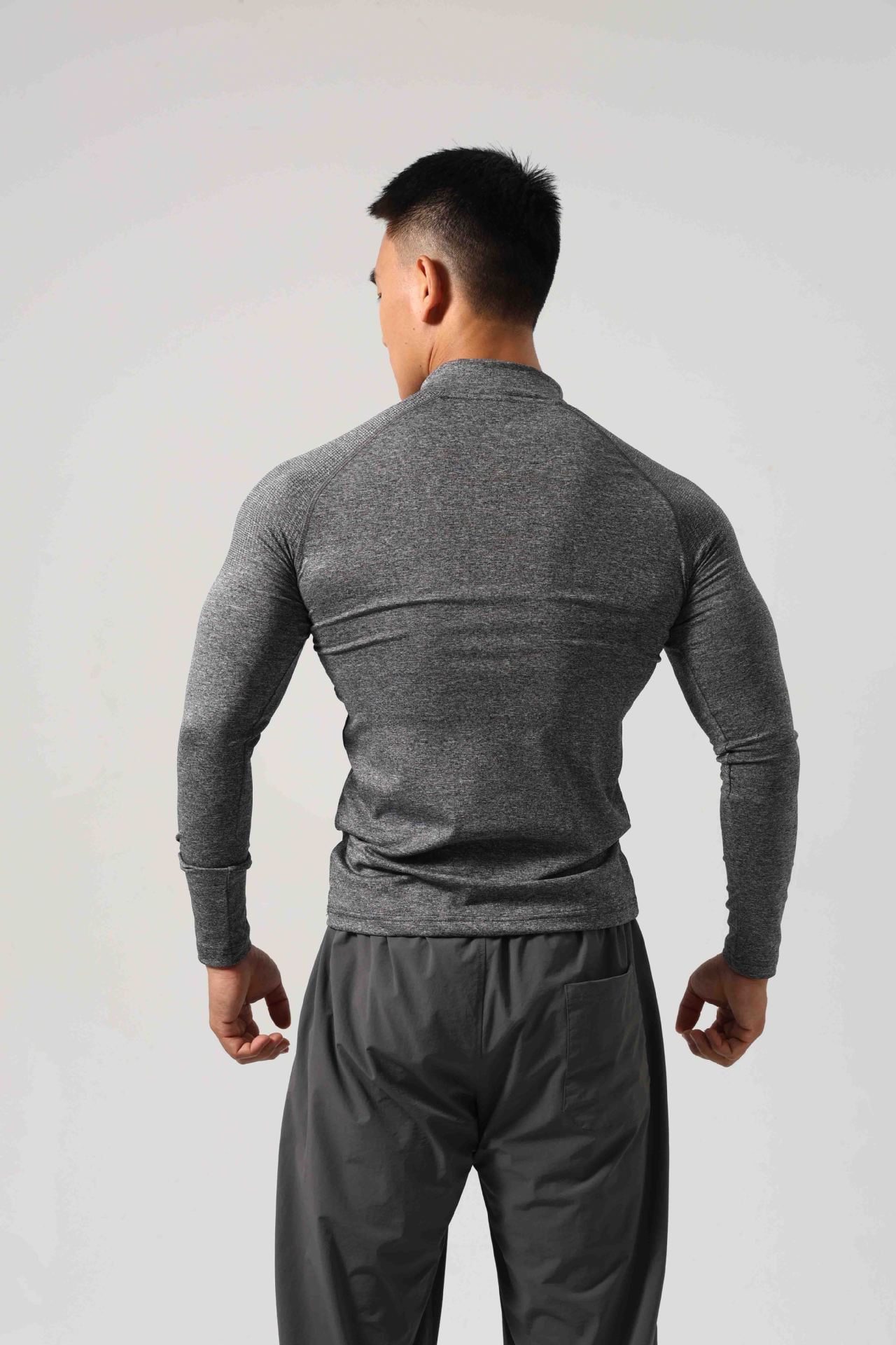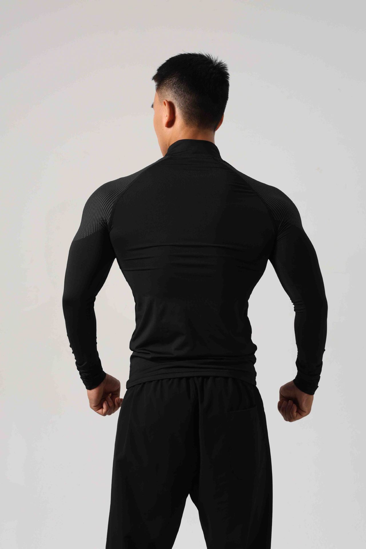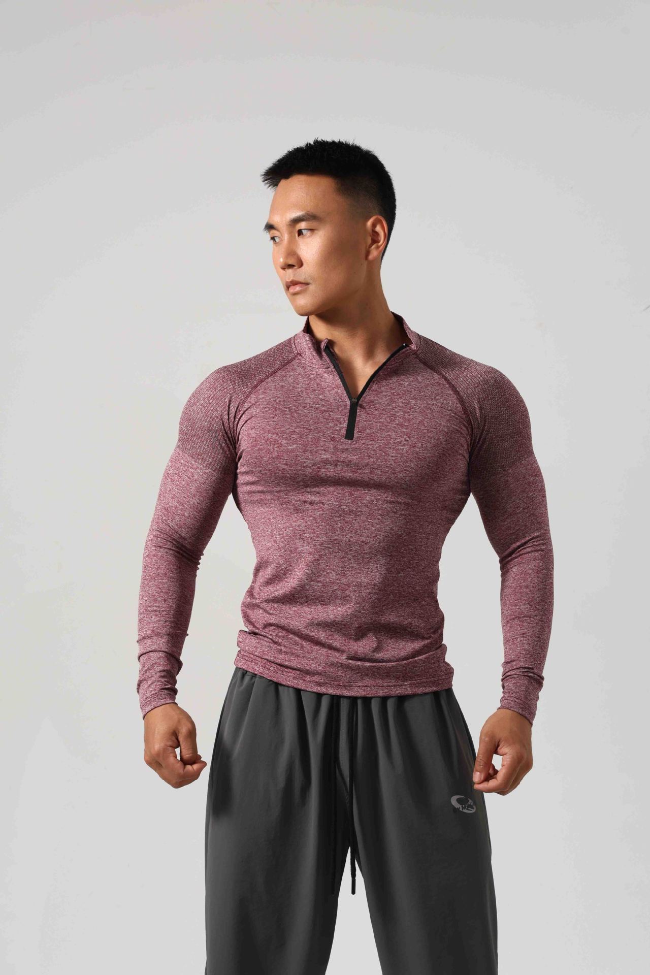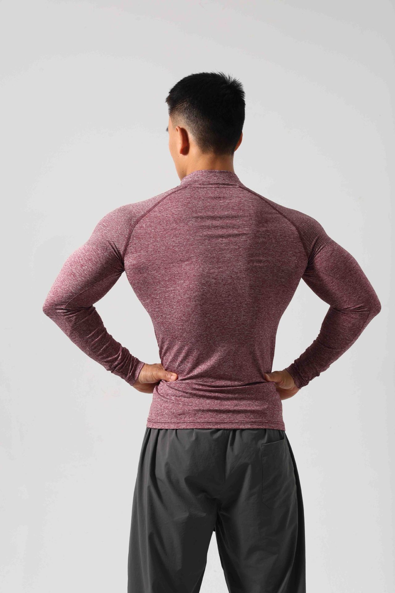 秋季无缝显大健身衣弹力速干运动半拉链长袖透气修身训练服上衣男