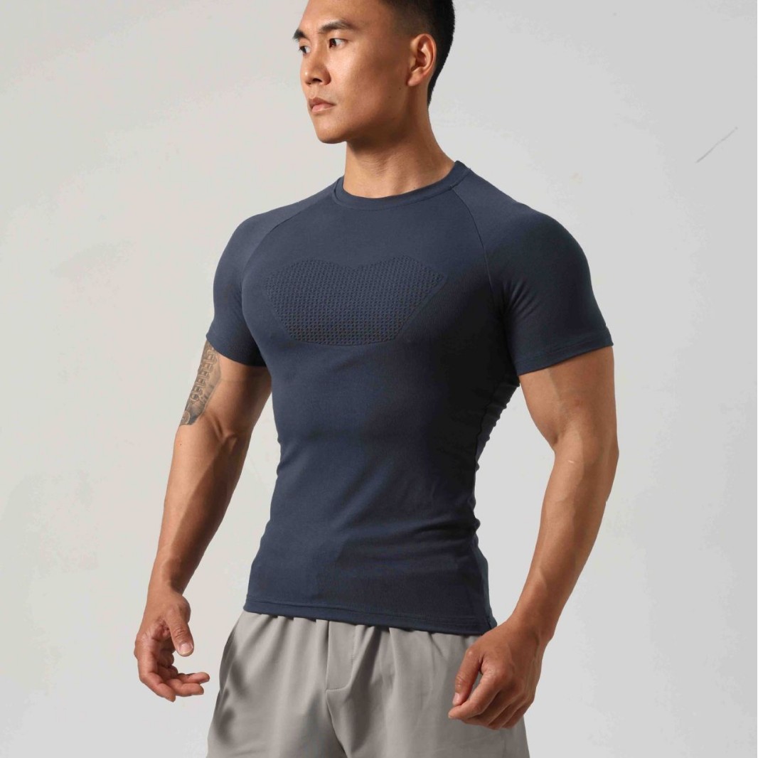 无缝一体健身服男长袖排汗T恤紧身衣跑步运动训练速干衣宽松大码