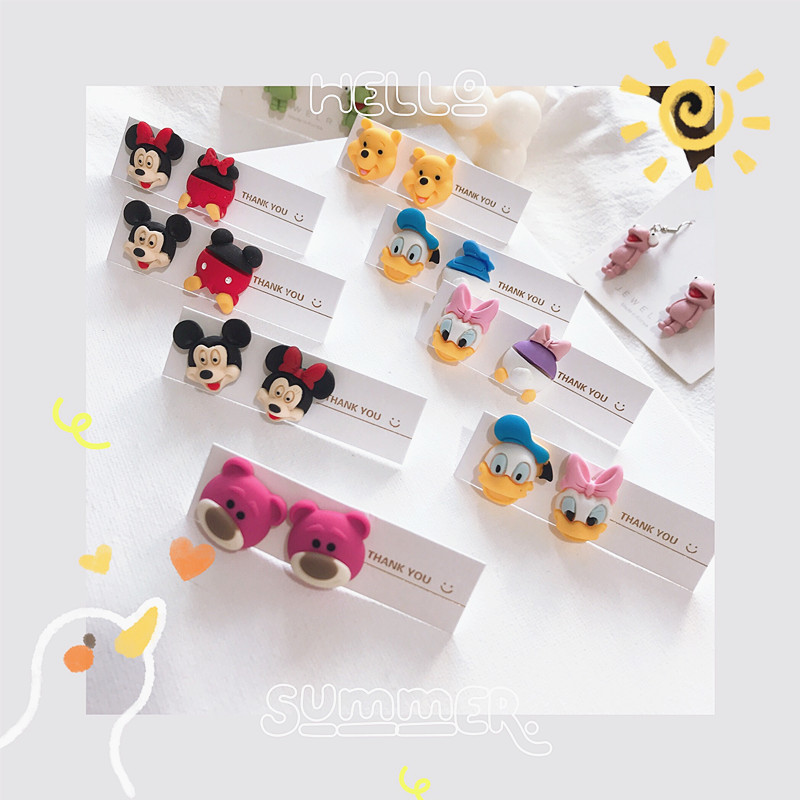Shier日系ミッキーかわいいピアス唐老鴨いちご熊アニメ925銀非対称ピアス