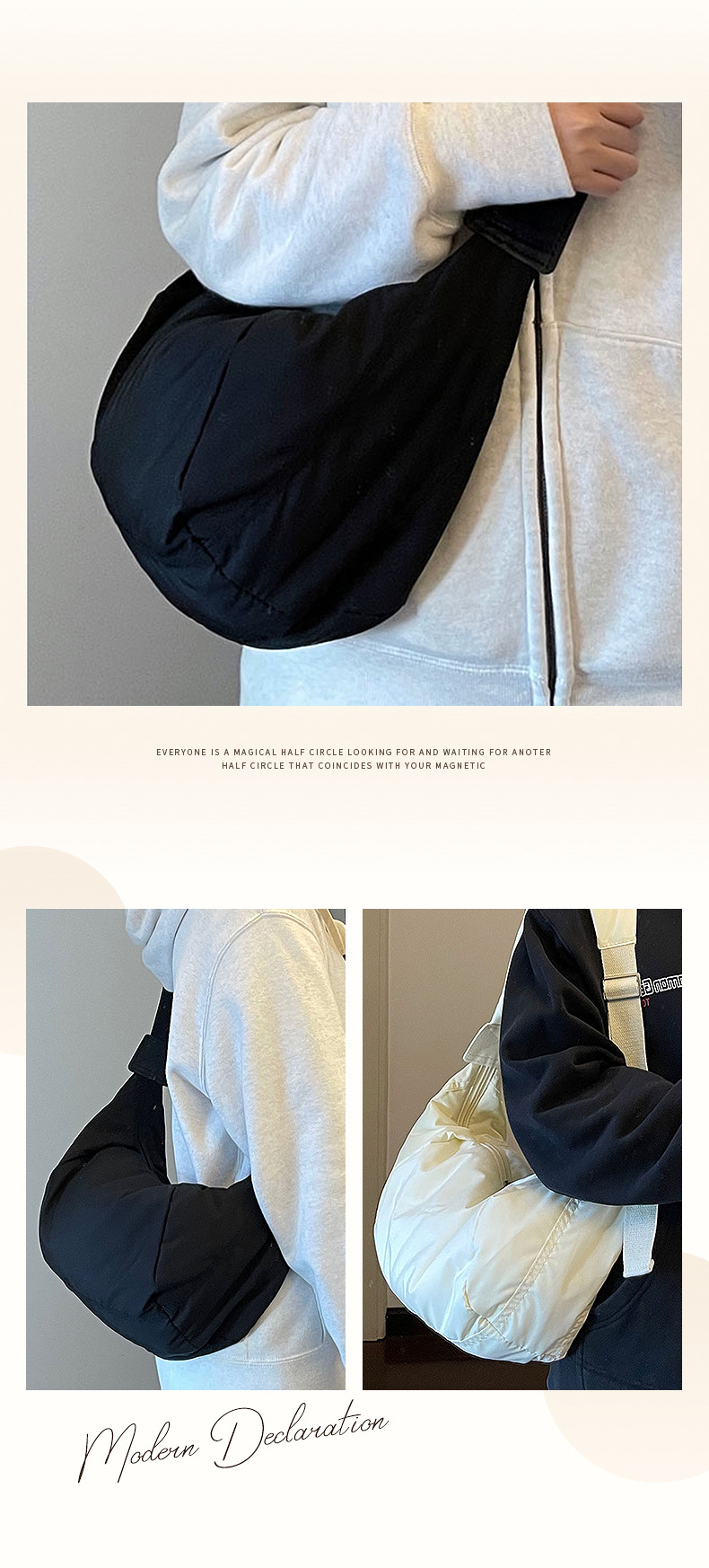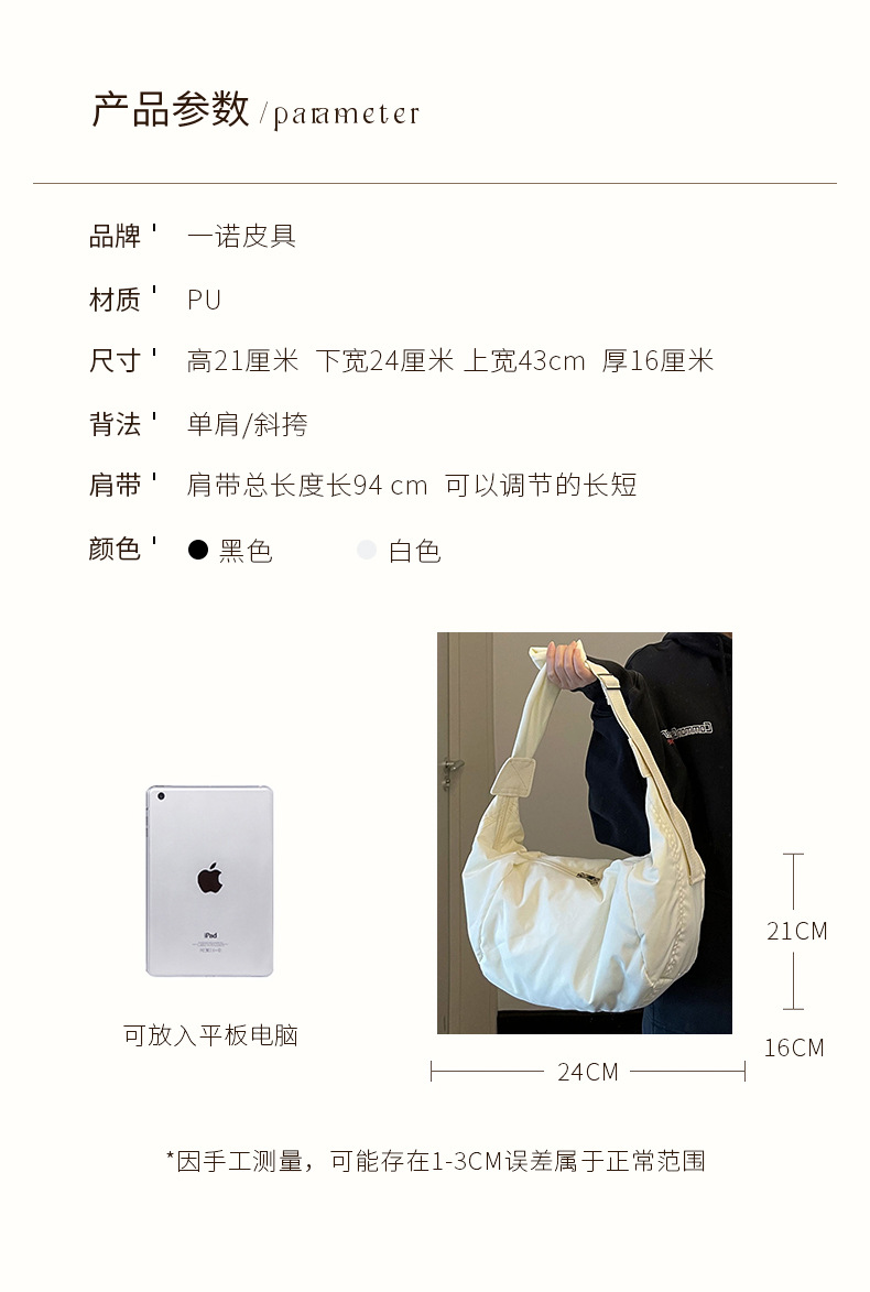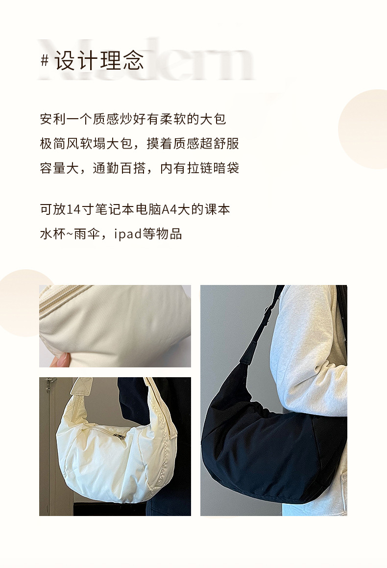 2025年新作ins大容量餃子バッグ和風ショルダーバッグダウンコットンシンプルカジュアル万能クロスボディバッグ