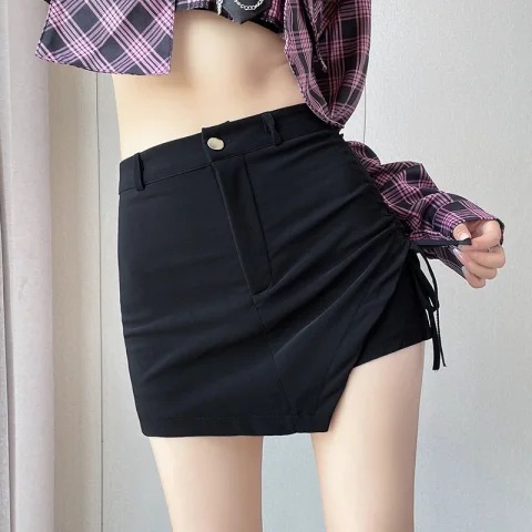 スーツグレースカートレディース2025年夏新作ヒップカバーショートスカートブラックハイウエストショートスカート