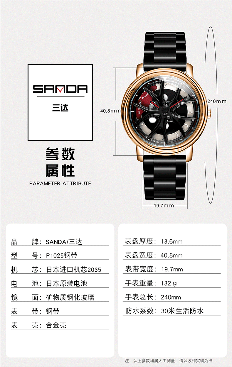 公式の正規品の腕時計の女性の大きい文字板の防水の夜光のヨットの迪通は国境を越える電気商の多機能の2024新を持ちます。