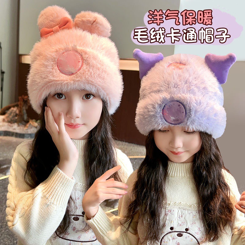 サンリオ新商品洋気パイル帽子供冬可爱いクロミ保温帽子女の子ベルベット防寒帽子