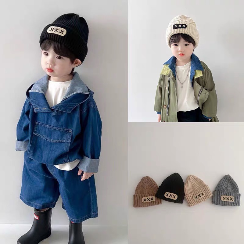 韩国ins 风秋冬季宝宝卷边保暖外出防风针织帽男女童简约潮毛线帽