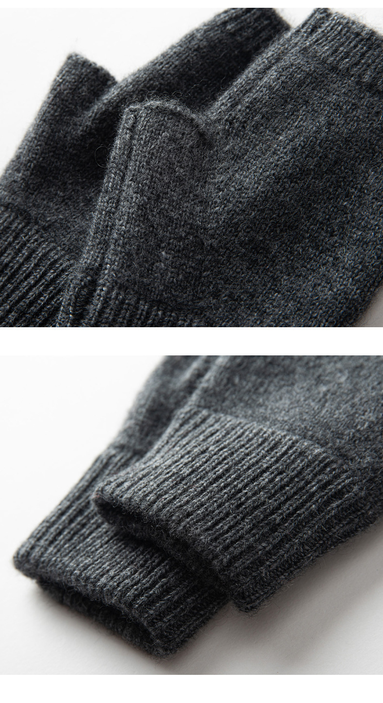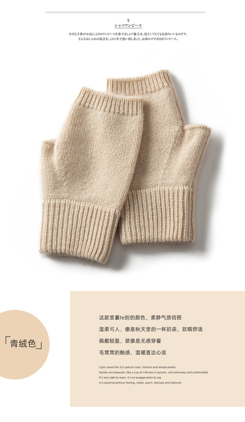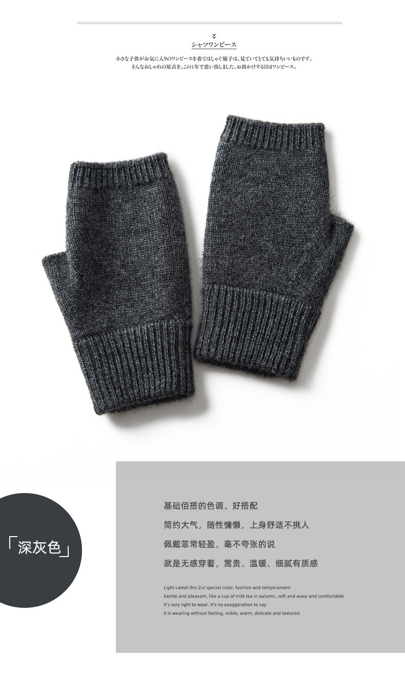 秋冬厚手100% カシミヤ手袋アウトドア防寒保温ニットカシミヤ半指手袋指漏れ手袋