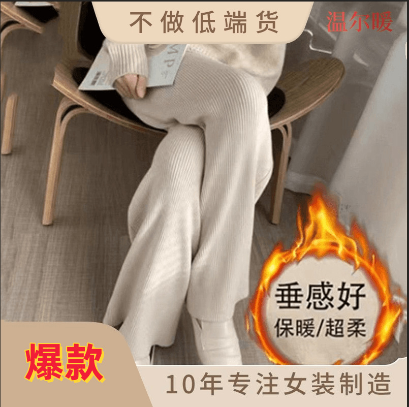 ウールニットのワイドパンツの女性秋冬の高腰の垂れ下がった感じの毛糸のモップのズボンの延長の外はカジュアルな足のストレートパンツを着ます。