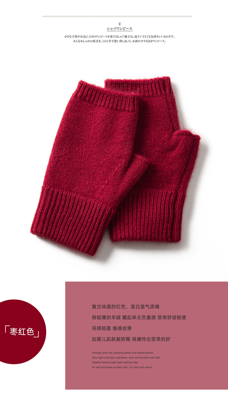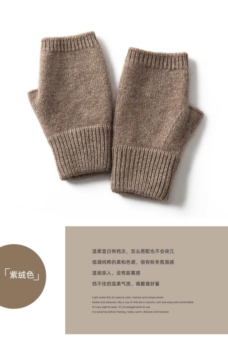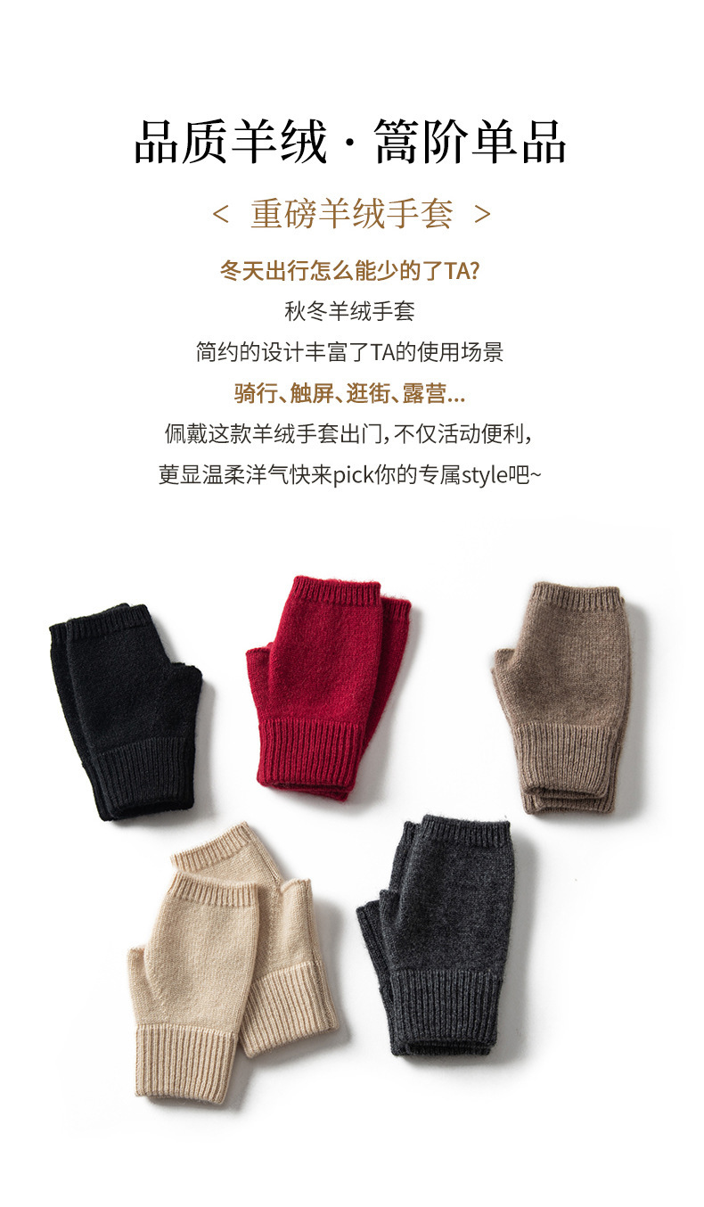 山羊绒半指手套女秋冬纯色羊绒漏指手套户外防寒保暖针织手套批发