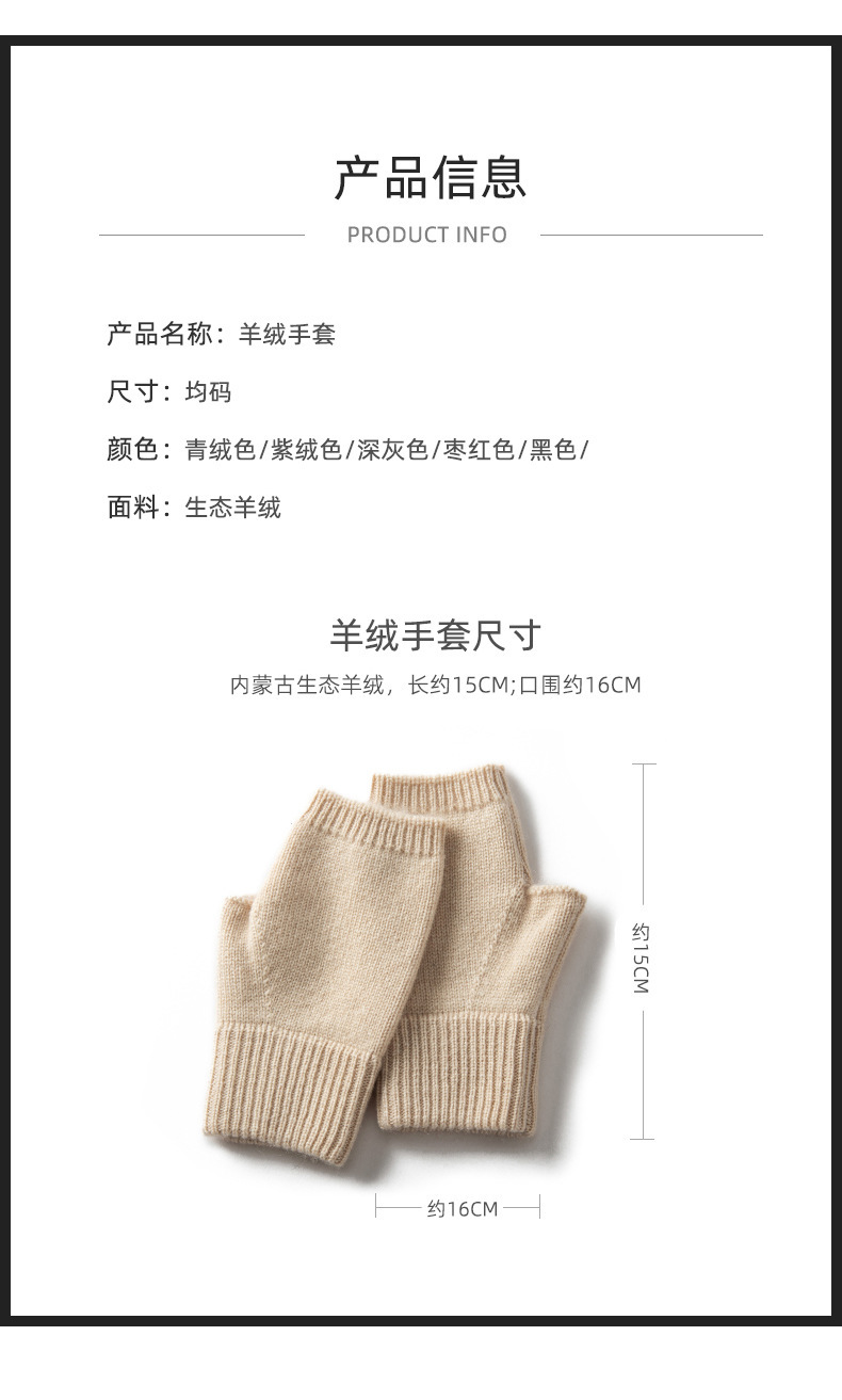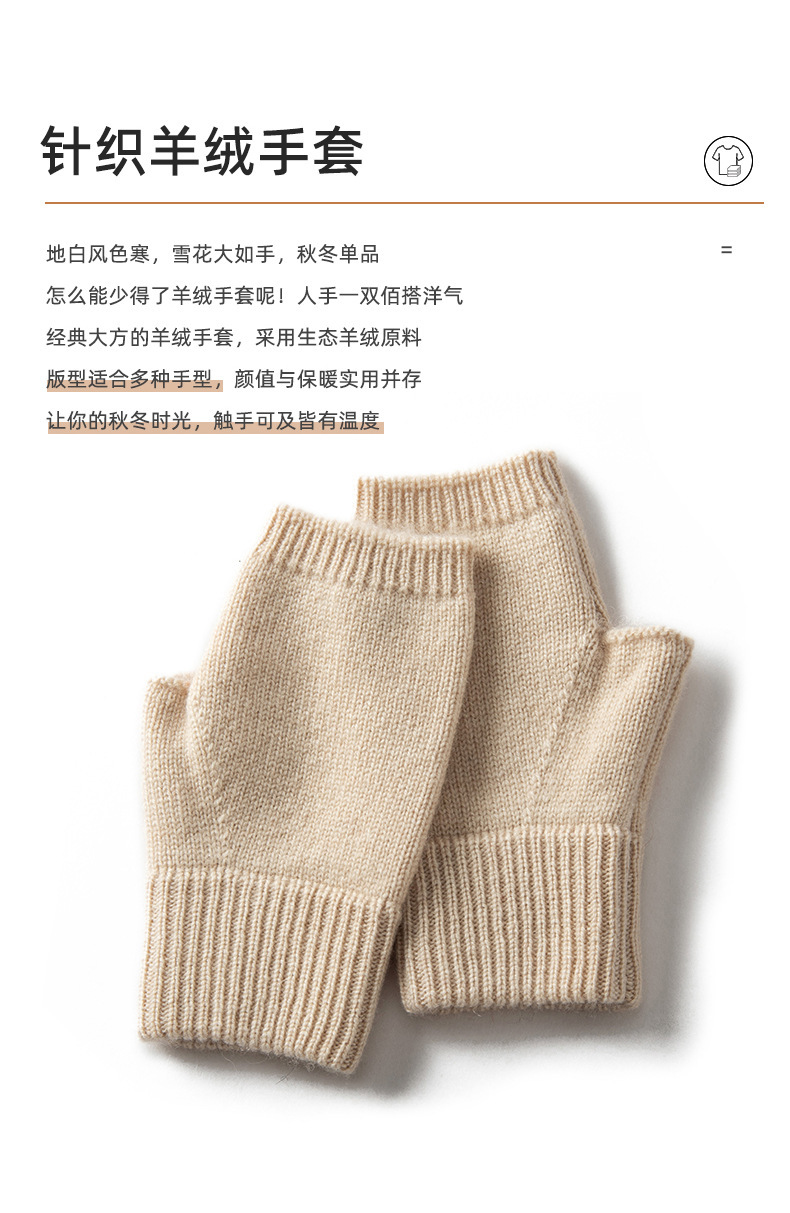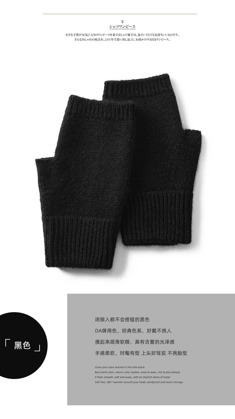 山羊绒半指手套女秋冬纯色羊绒漏指手套户外防寒保暖针织手套批发