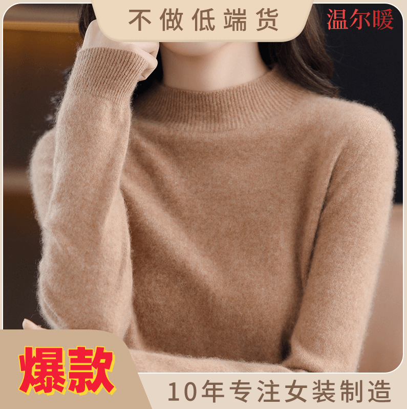 シームレスなハーフタートルネックカシミヤ秋冬シンプルスリムフィットトップスレディースセーターニットウールインナーウェア