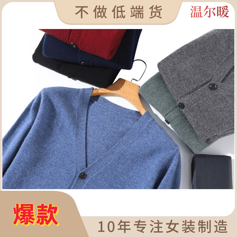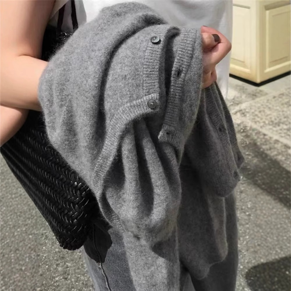秋冬の新型100ウールのカーディガンの女性の丸首の韓国版のシンプルな短いタイプのゆったりしたセーターの長袖のコートの大きいサイズ