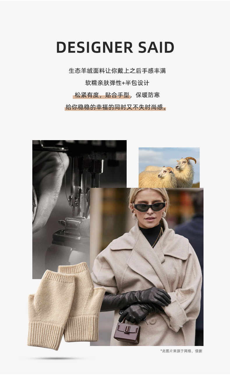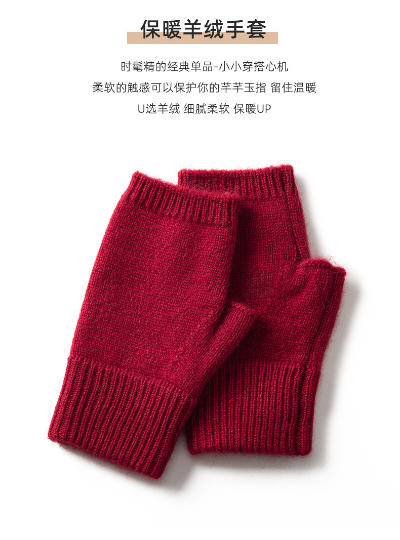 纯山羊绒手套男女保暖针织手套漏指手套半指手套保暖防寒触屏