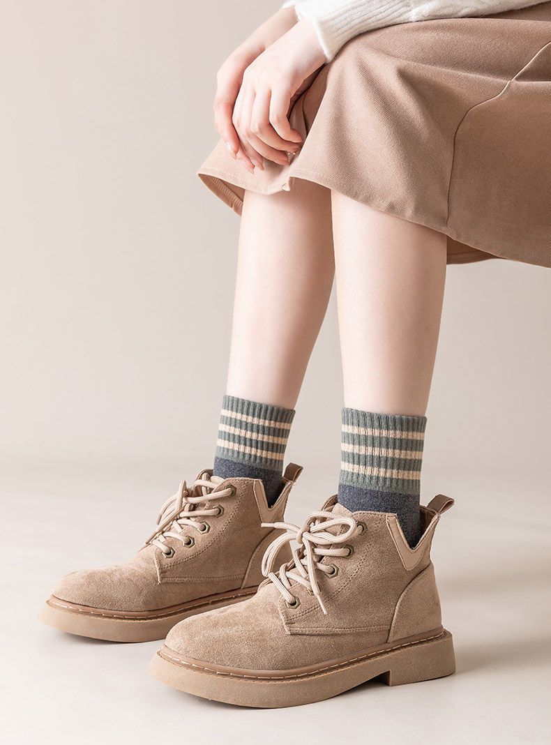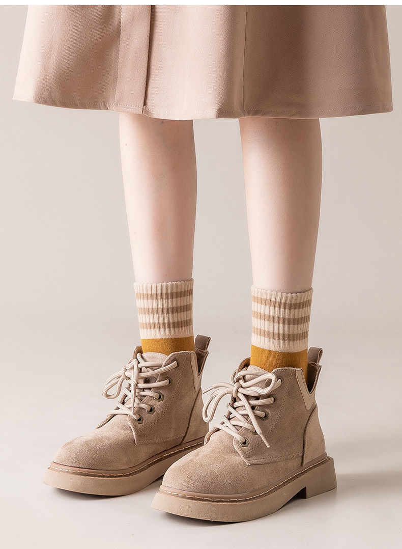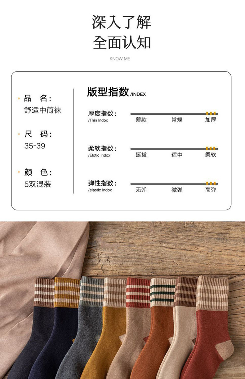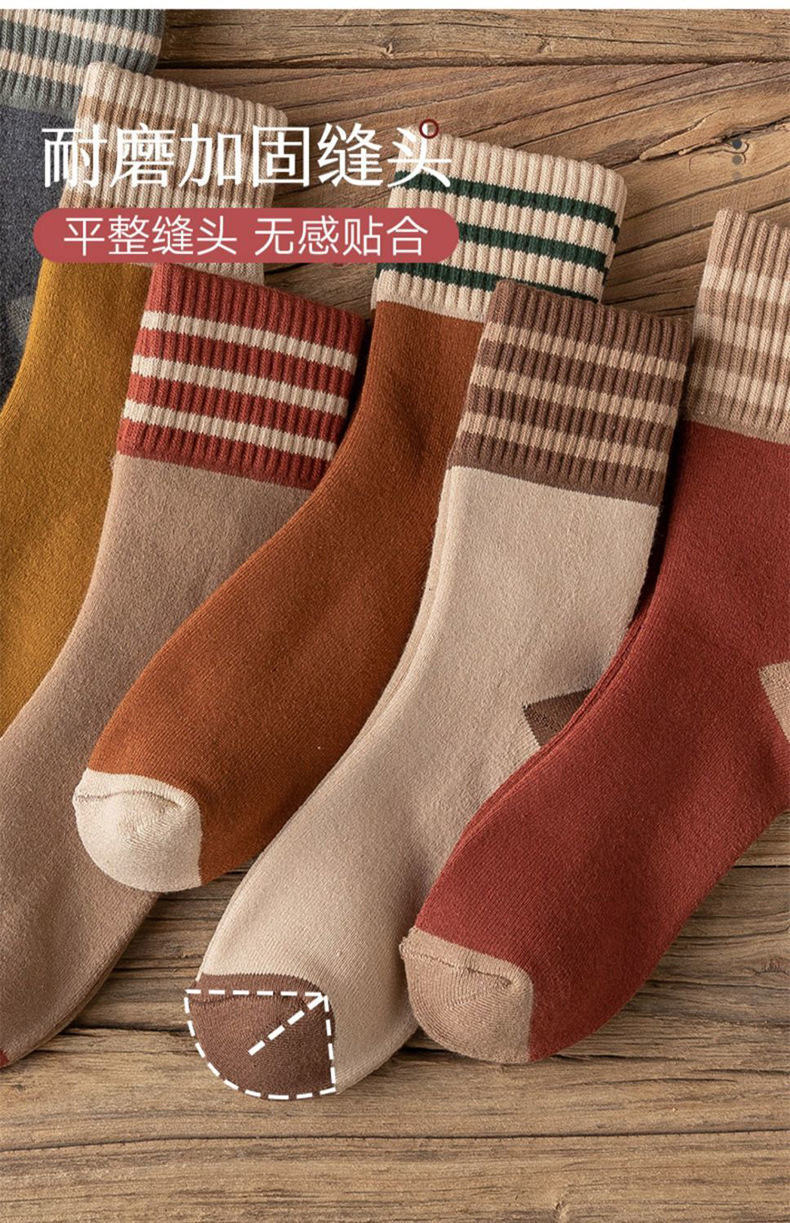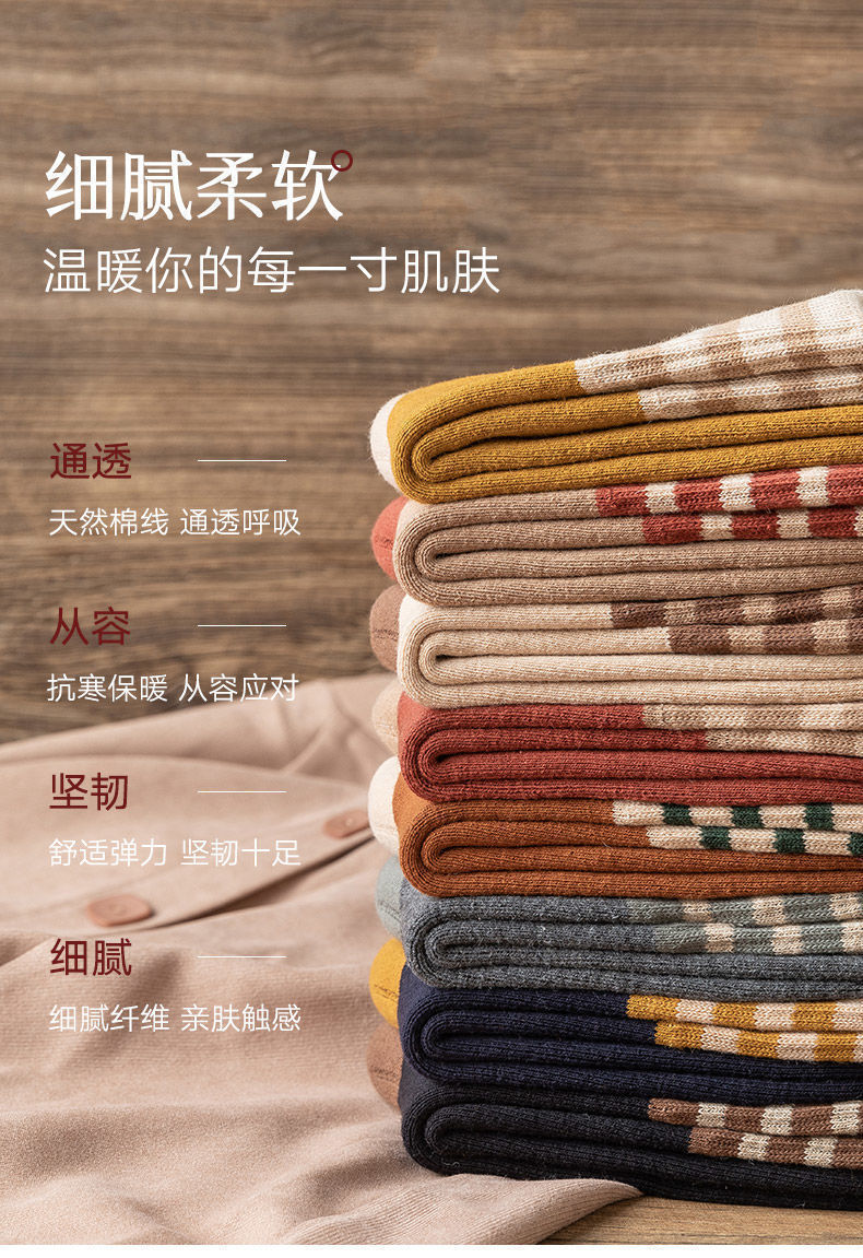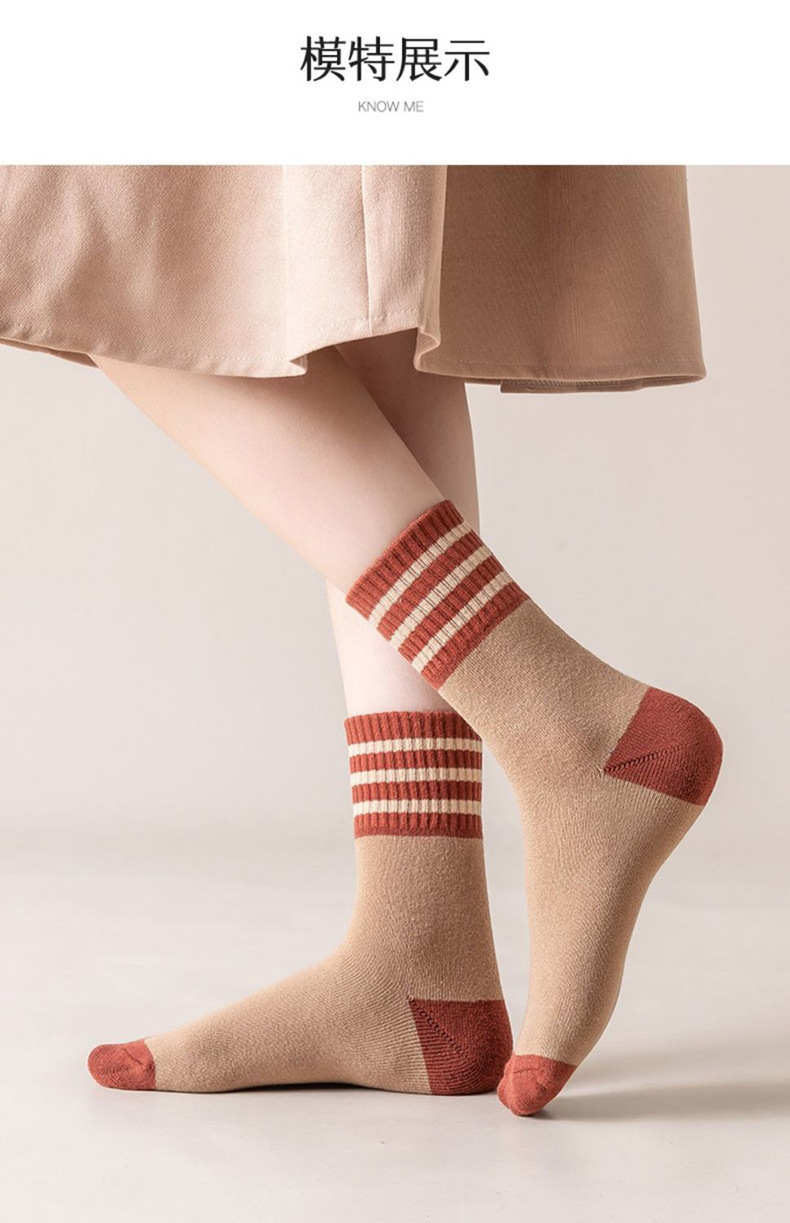 秋冬用厚手ストライプテリーソックス レディース ミドル丈 裏起毛 暖かい 日本風 レトロ ミドル丈 レディース フロアソックス 学生向け