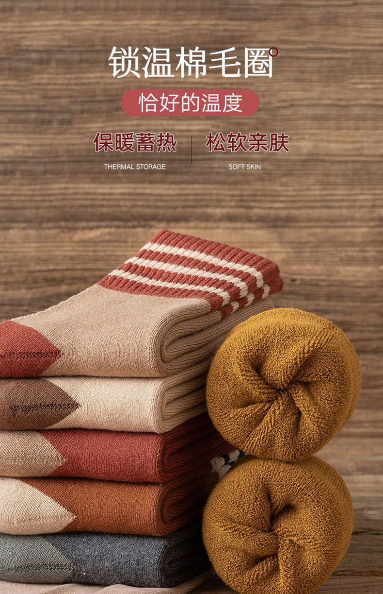 男女士袜子冬天厚款加毛袜子自发热毛圈情侣款男女同款加厚毛巾袜