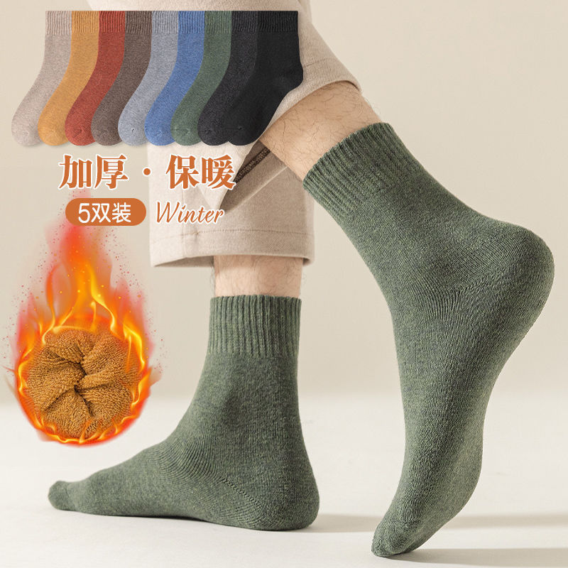 男性用冬用厚手テリーソックス、保温ミドル丈ソックス、防寒男性用テリーヒールプロテクター、フットカバー