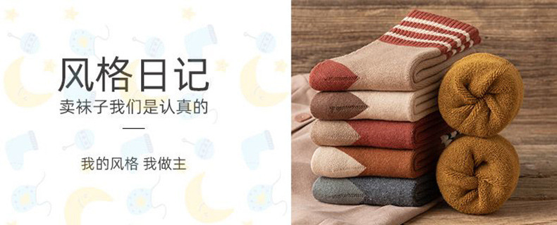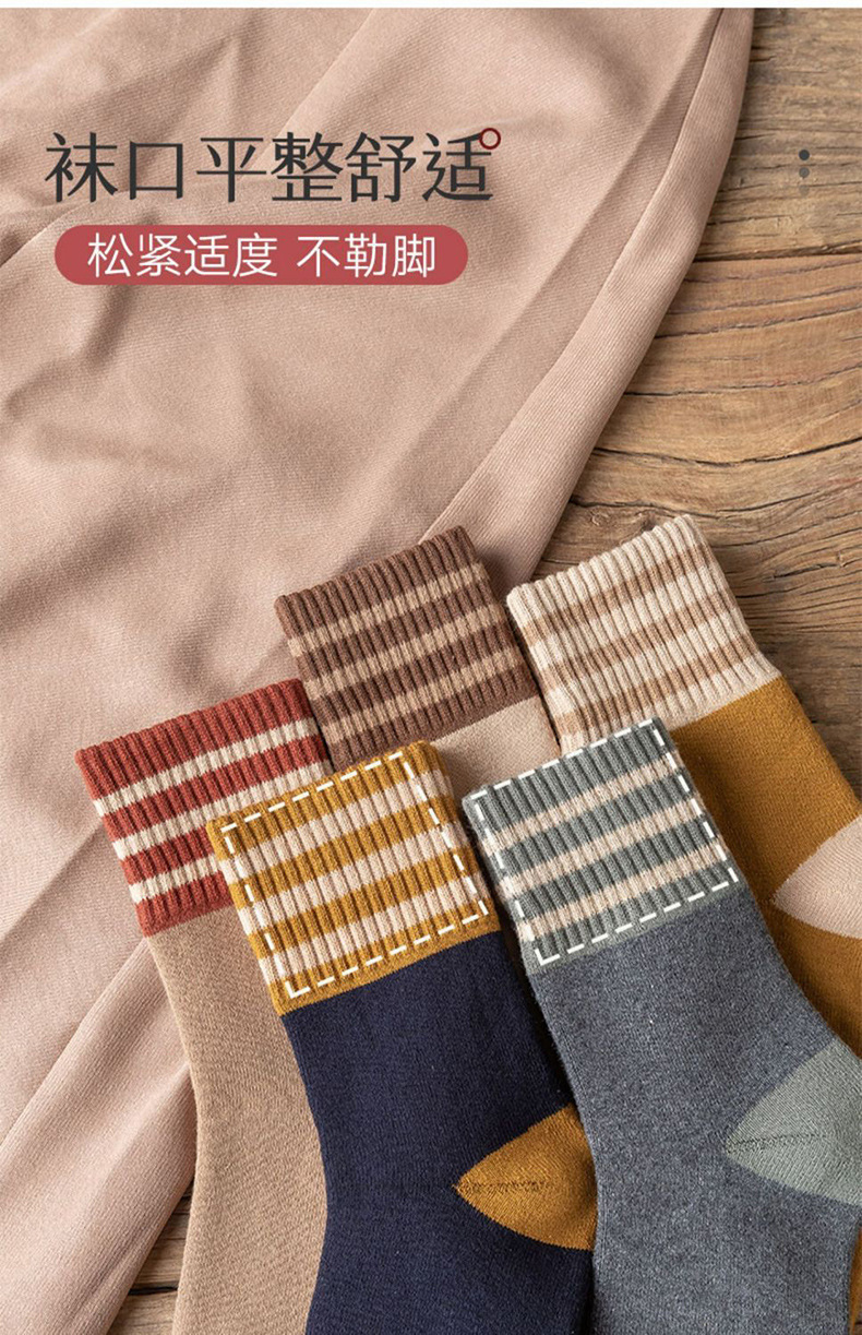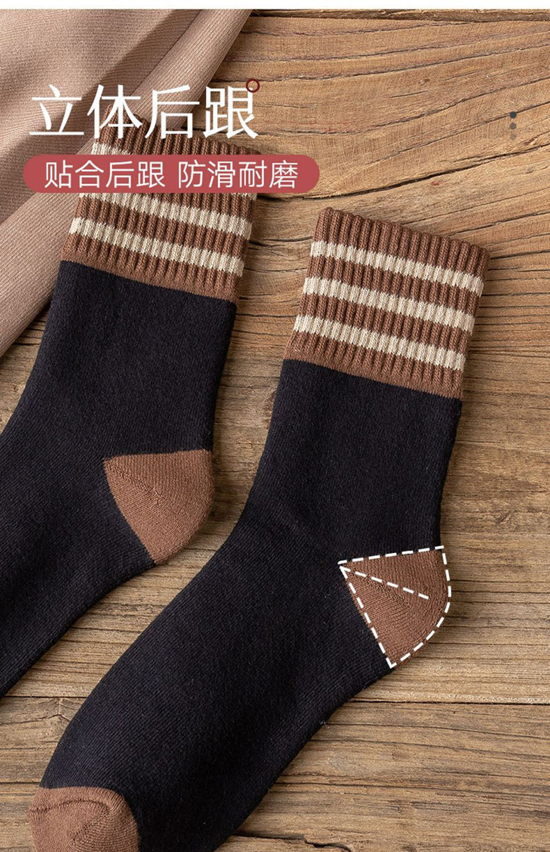毛圈袜子女中筒冬天条纹女士加厚保暖女生冬季加厚学生袜子情侣袜