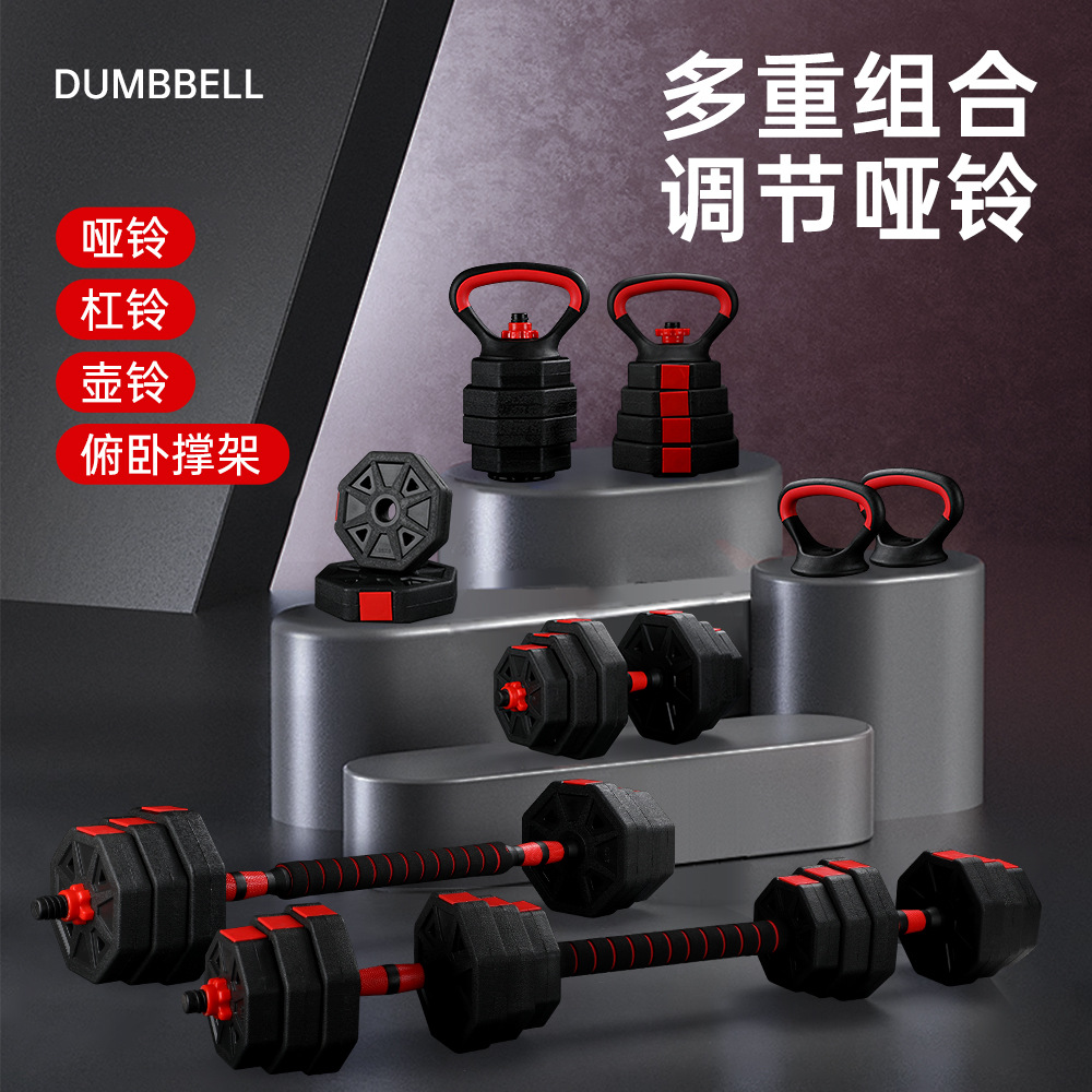 环保八角哑铃男士居家用健身器材锻炼可调节重量杠铃壶铃套装组合