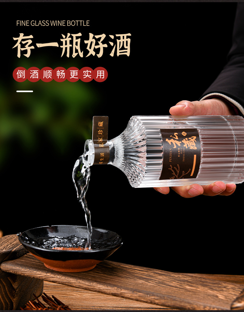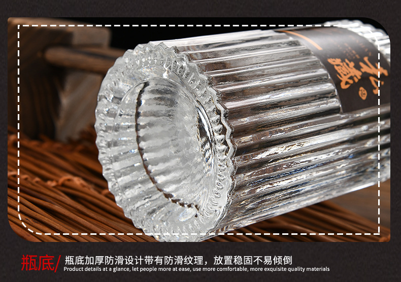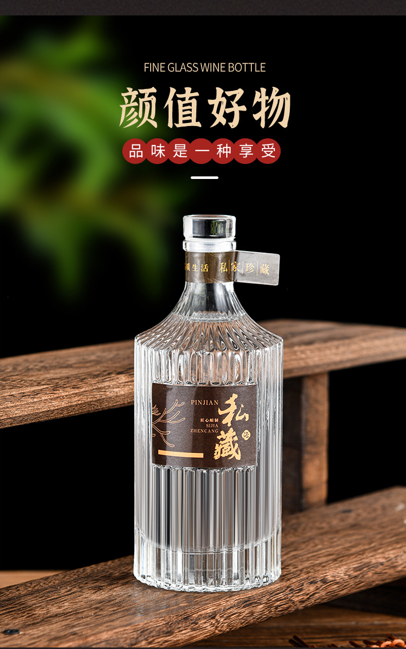メーカー卸売り白酒瓶縦紋ガラス酒瓶自醸造楊梅桑果酒瓶密封分装貯蔵酒器