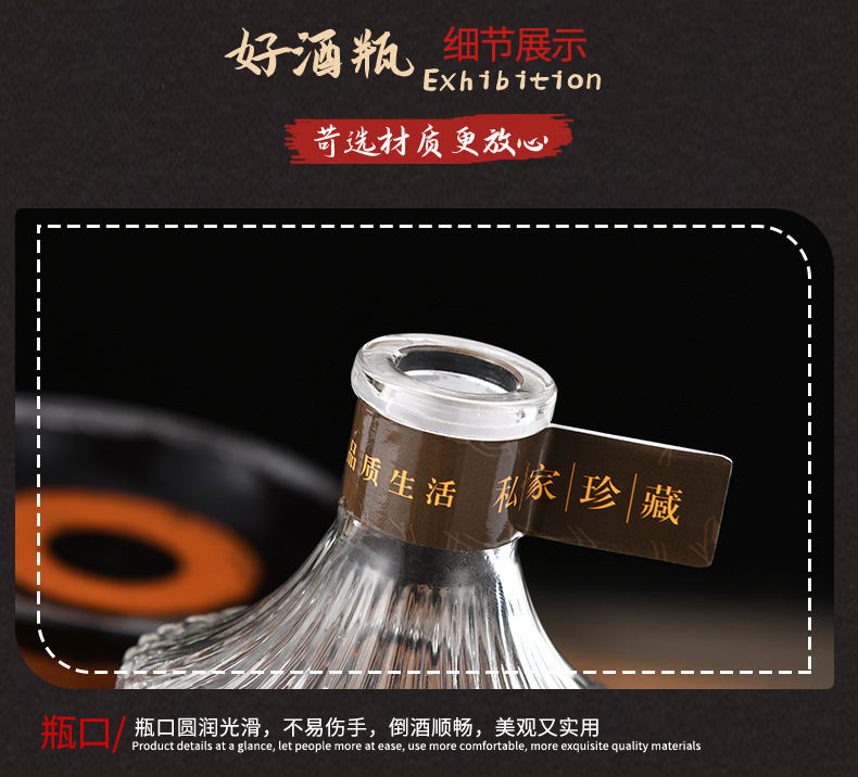 ワイングラス瓶円形密封自醸造梅酒瓶透明蒙砂高颜値空瓶フルセットラベル付き