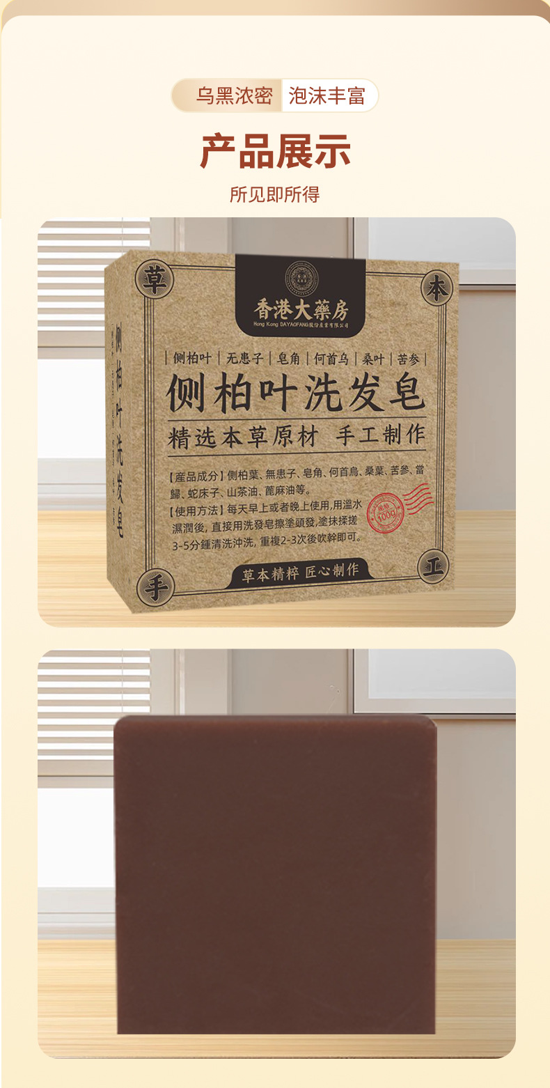 洗发皂侧柏叶洗头皂手工皂乌斯曼何首乌生姜去屑控油草本乌发皂