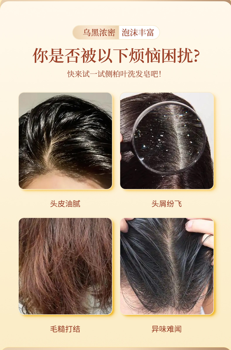 侧柏叶何首乌无患子皂角茶油纯手工冷制洗发皂护发植物蓬松养发
