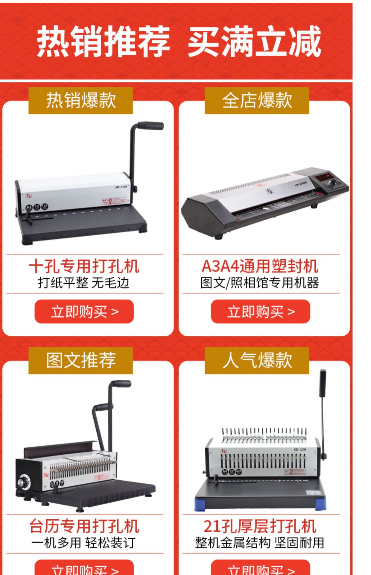雷盛鉄リング製本機TD-130ダブルコイルクロスボーダー34穴画帳オフィスファイルメニュー卓上カレンダー穴あけ機