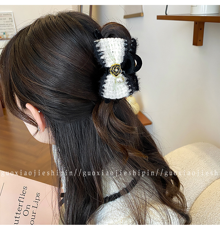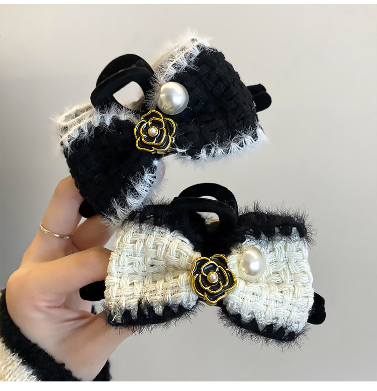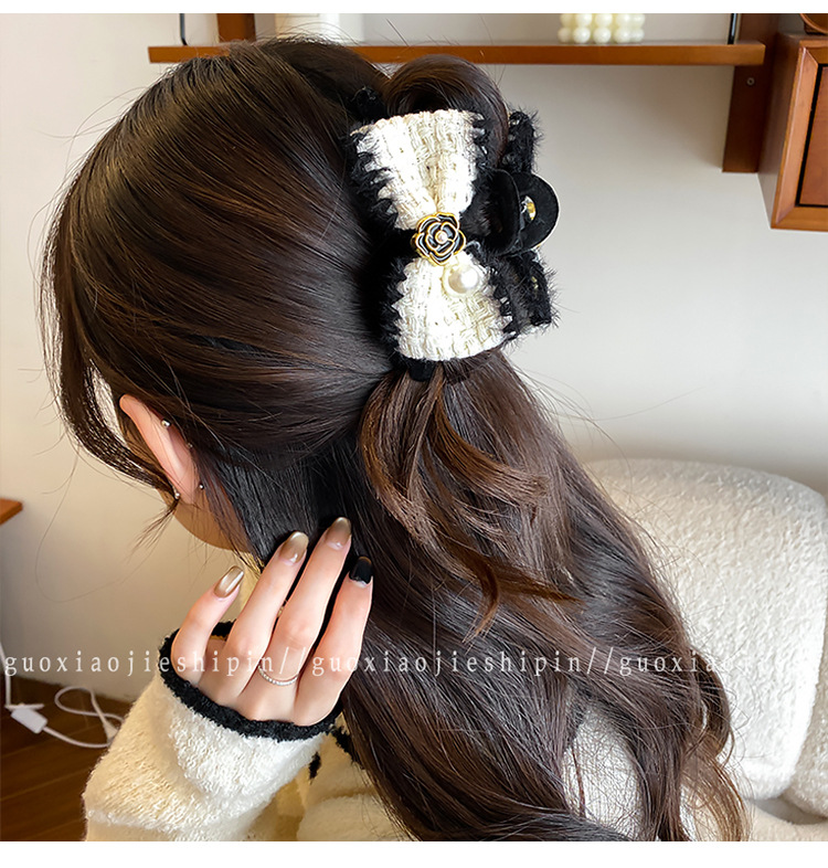 小香風蝶結びヘアクリップ女性秋冬後頭部ヘアクリップぬいぐるみサメクリップレトロ気質髪飾り