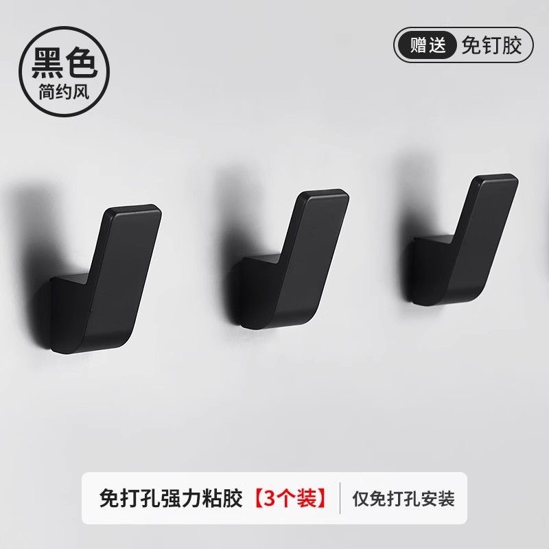 宇宙アルミフック服装帽子フック黒穴なしドア後フックキッチン浴室壁掛けタオル創意シングルフック