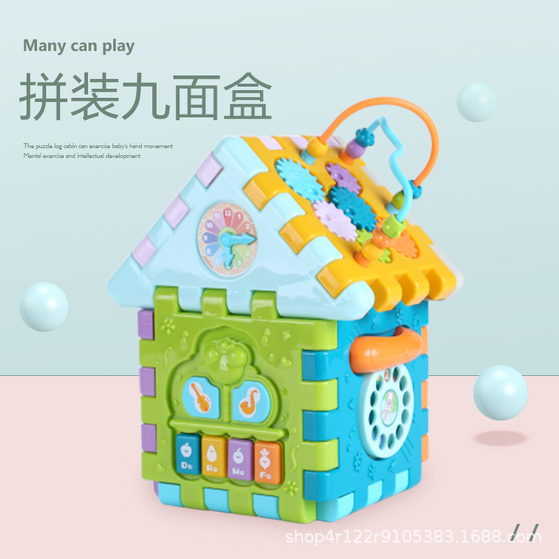 【包郵便】六面箱多機能赤ちゃん玩具形状ペア認知積み木早教益智屋1-3歳