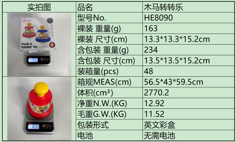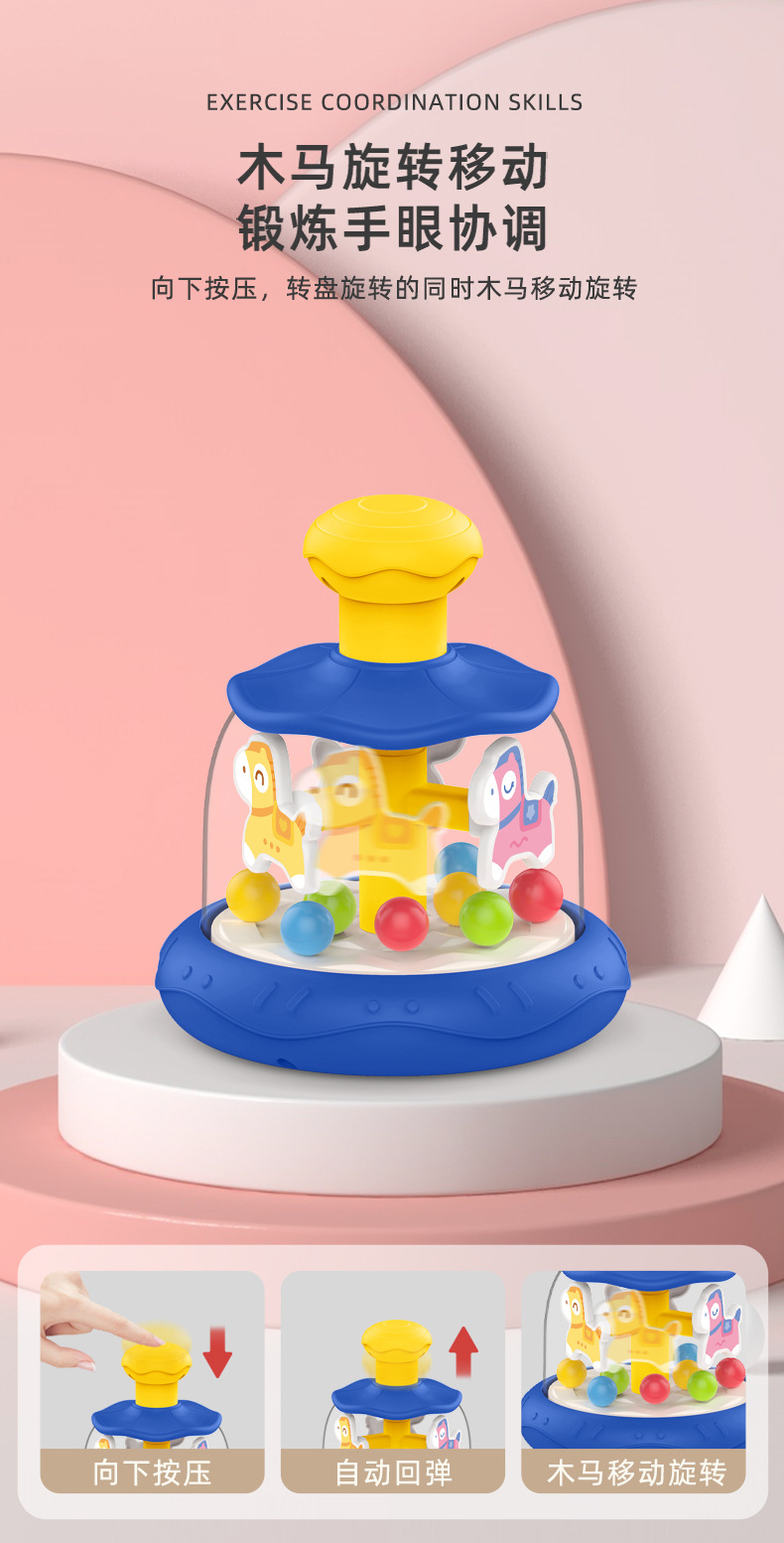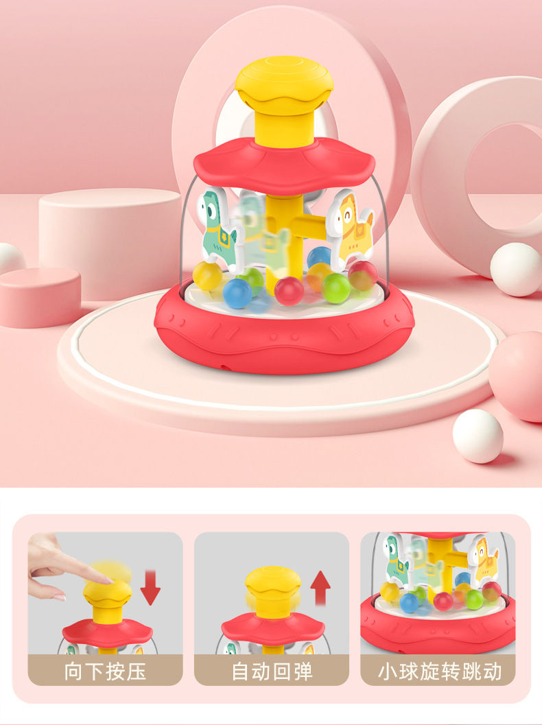 【包郵便】子供が回転トロイの木馬を押して跳ぶ乳幼児の色認知赤ちゃん早教知育玩具