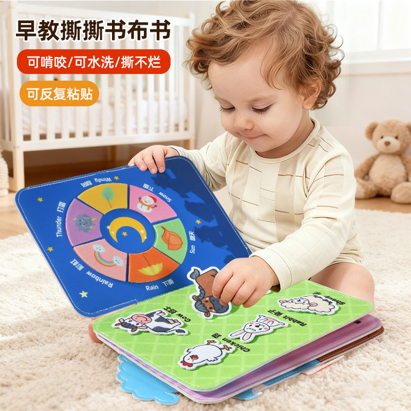 【包邮】跨境可水洗撕不烂早教布书婴幼儿早教撕撕书可啃咬早教玩