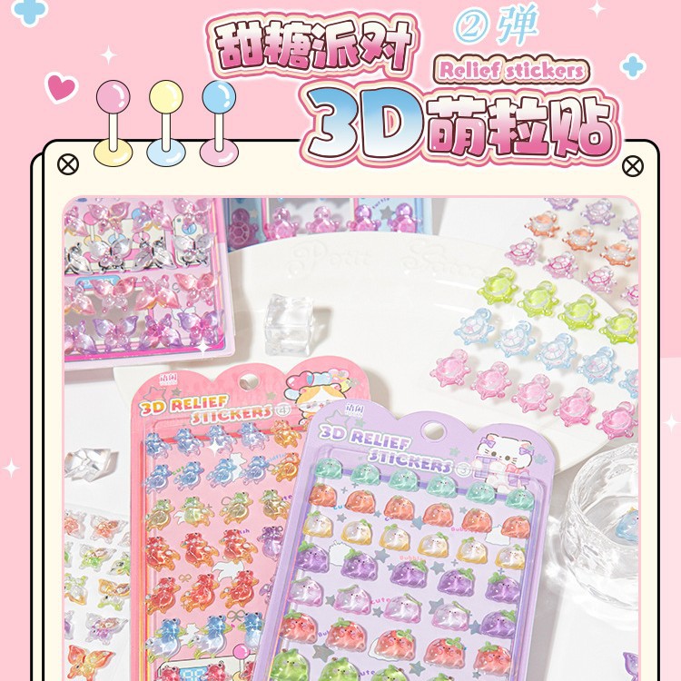 Shanle サンリオ正規認定 3D 立体レリーフステッカー ハローキティ 漫画風 クリスタル DIY ステッカー