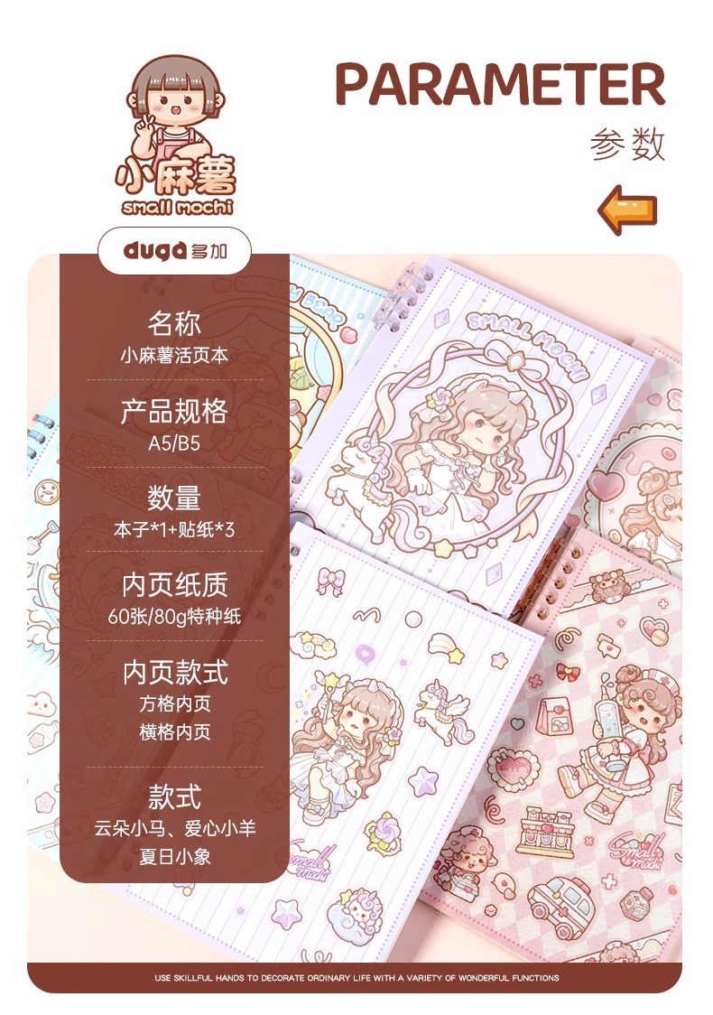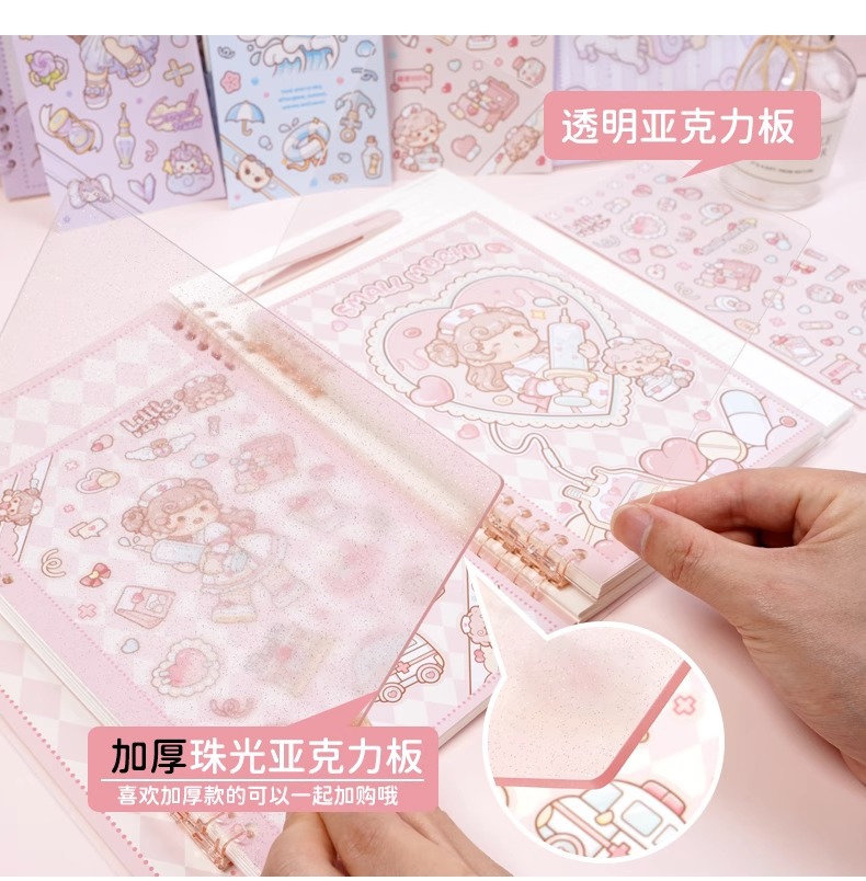 小麻薯リリースブック 超厚内ページ 両面使用可能 特殊油性カバー テープステッカー収納 ハンドブック ルーズリーフブック