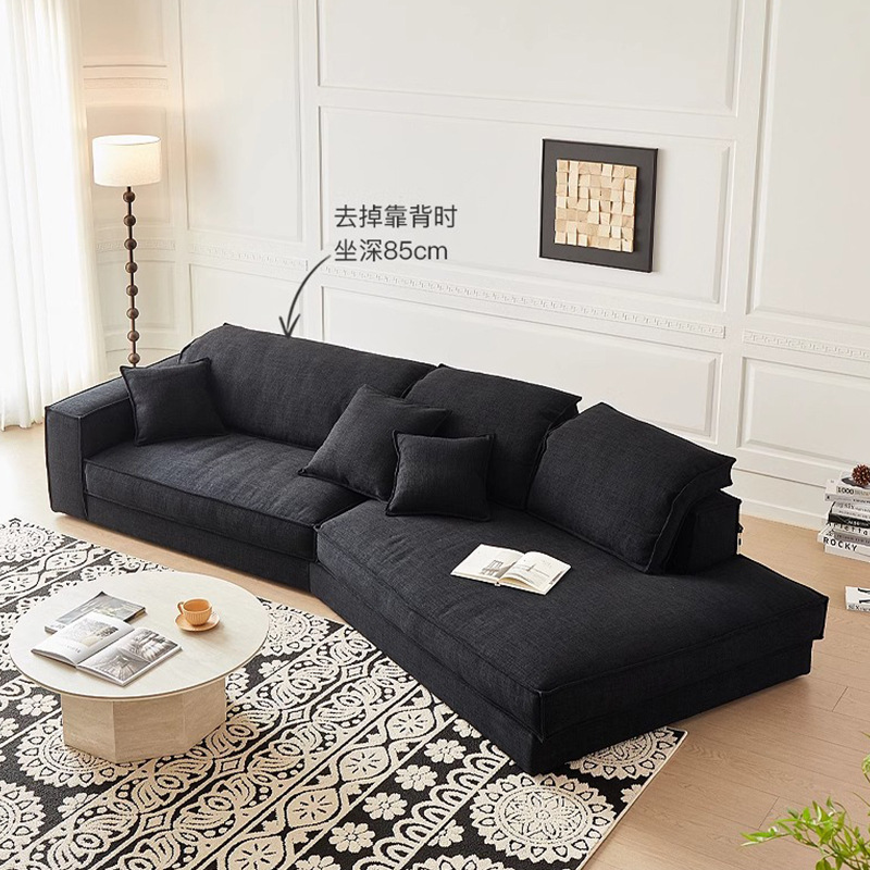 ブダペストソファ異形コーナー黒綿布大平層超幅座り深ダウン布芸ソファ