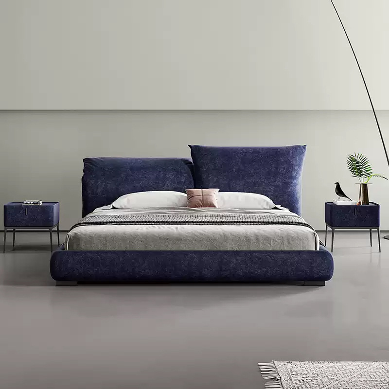 クロエ生地ベッドイタリアのミニマリストマスターベッドルームダブルベッドベルベットハイバックベッド広東省佛山家具工場