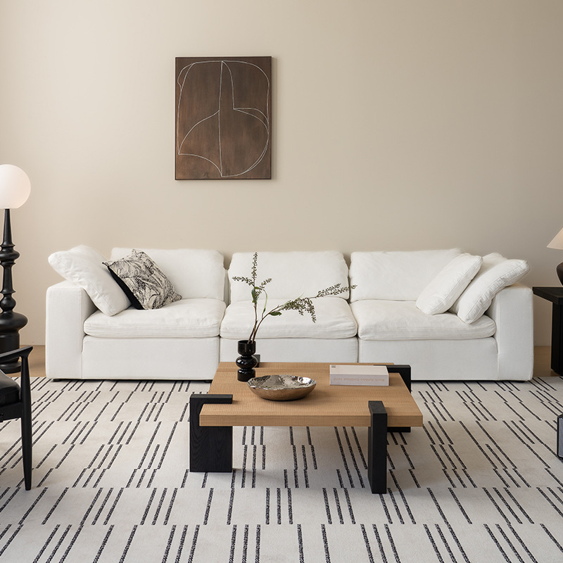 クラウドソファ フレンチスタイル ゆったりシンプル リネンコットン生地 ダウン入り 取り外し可能 洗える リビングルーム用 直列ソファ カスタムメイド