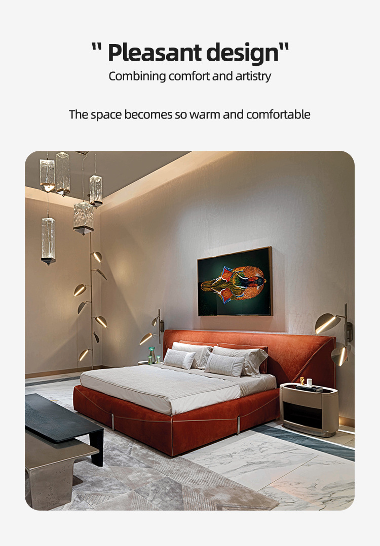 意式軽豪華封筒ベッド別荘大戸型ワイドスクリーン主臥頭層真皮二人結婚ベッドbedroom set