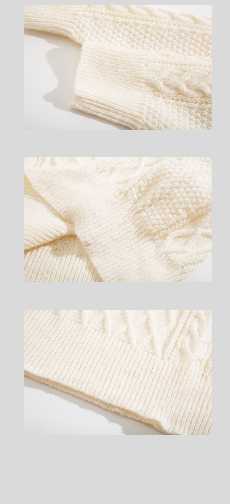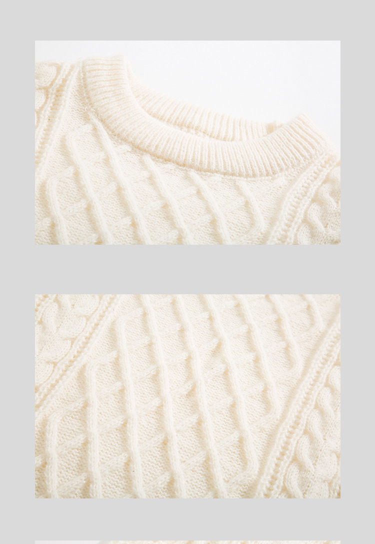 2024春と秋のレトロな純色の基礎丸首の縦紋セーターのコート