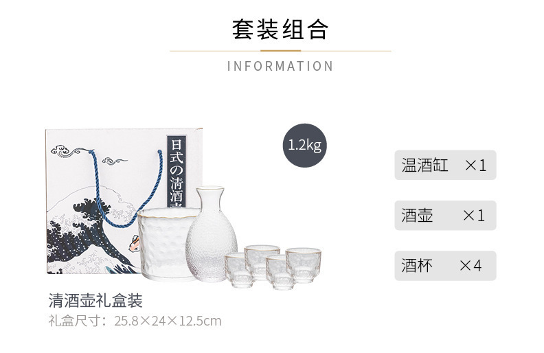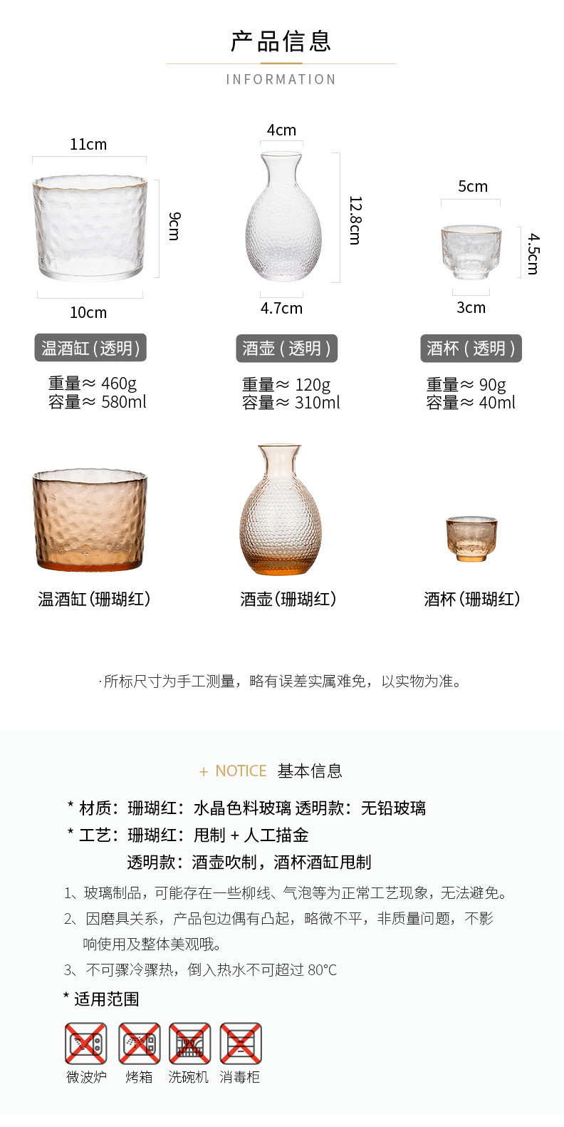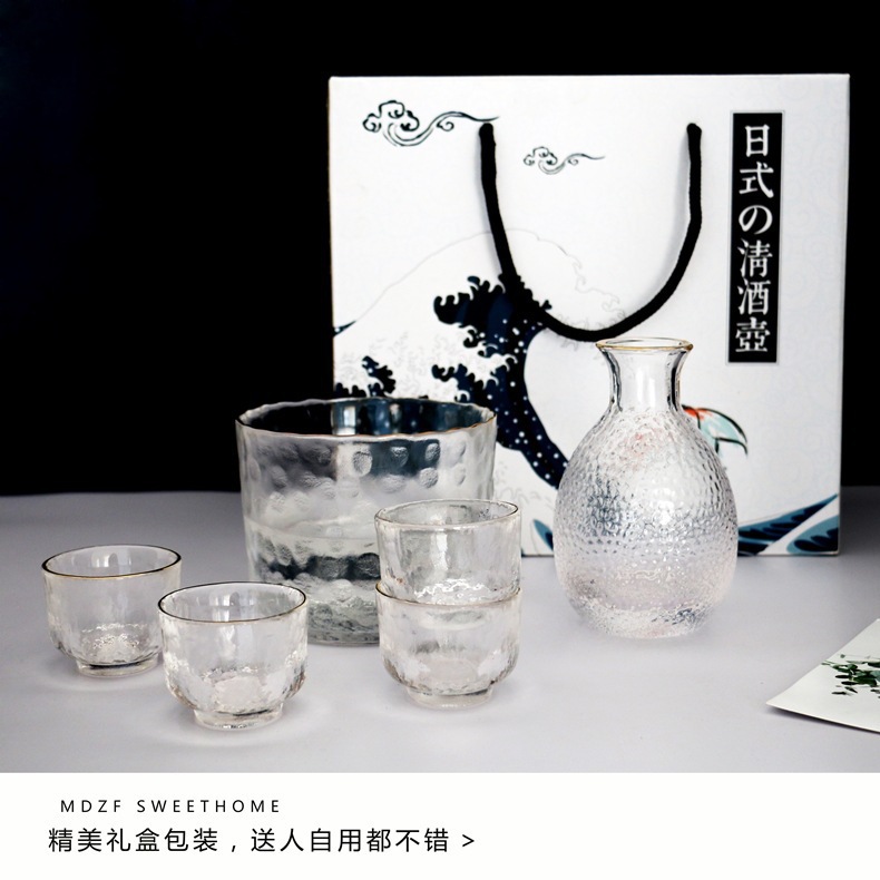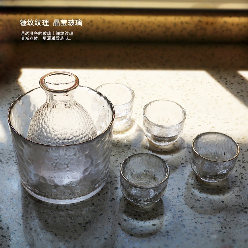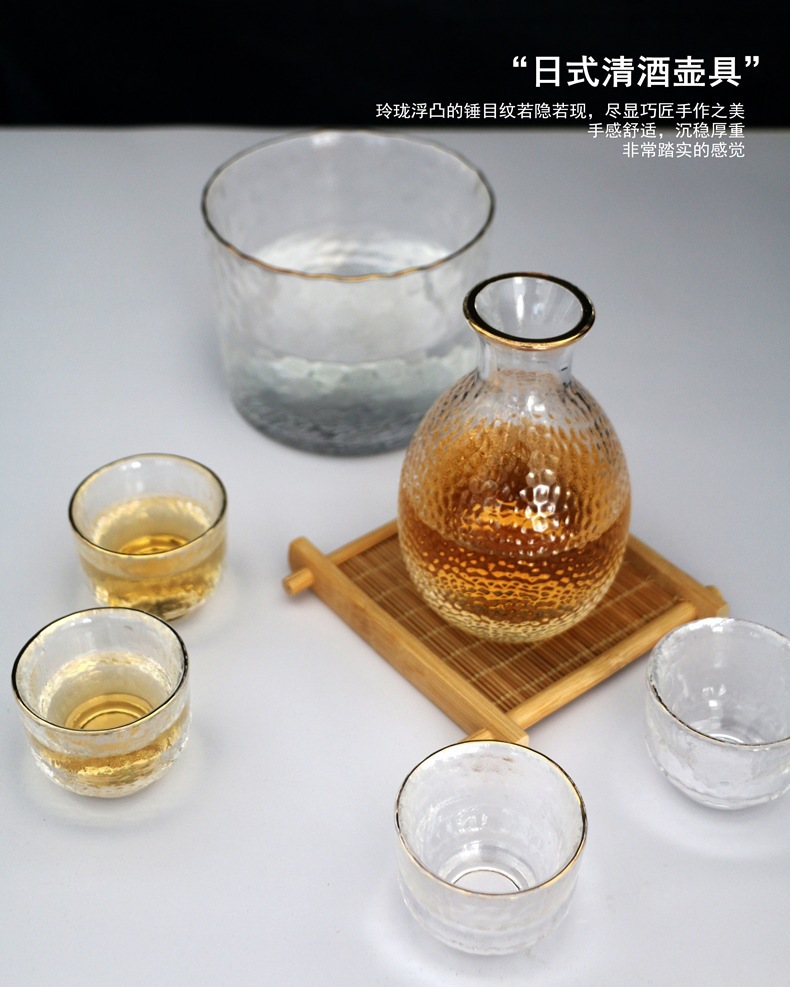 日本式ハンマー金辺ガラス清酒壺家庭用一両白杯黄酒温酒器高級感置物ins