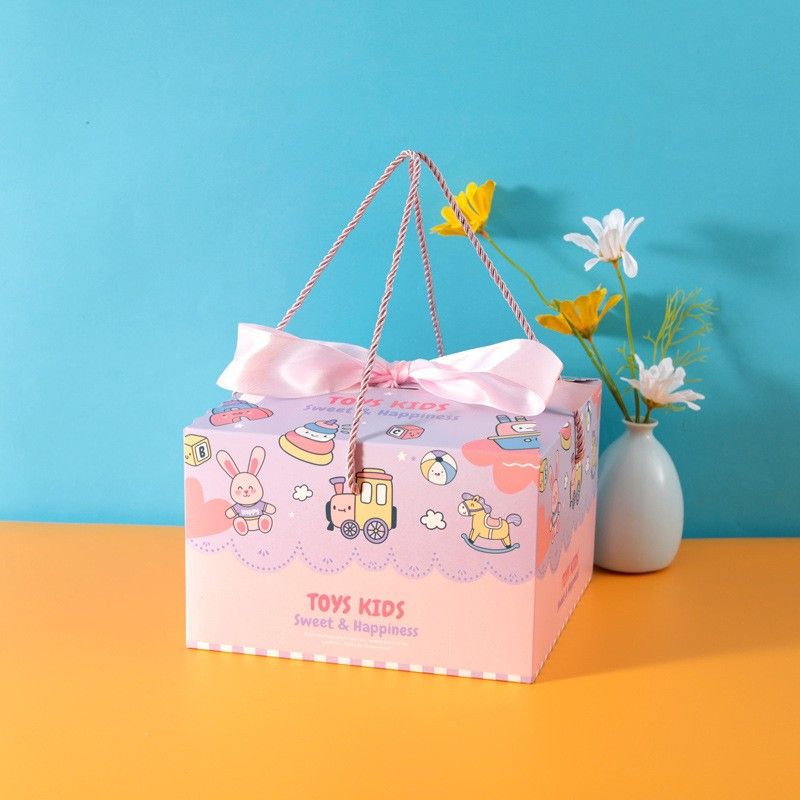 四角いボックス型の誕生日ケーキボックス、10歳のお子様用、高さのあるベビー満月ギフトボックス、お菓子ギフトボックス、可愛い手提げ箱