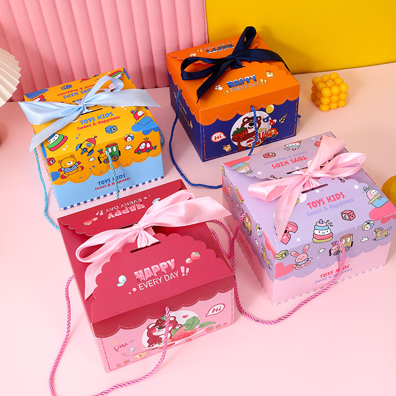 新しい漫画の子供のギフトボックスのケーキの箱の赤ちゃんの満月の宴会はギフトボックスの空の箱の手のギフトボックスの包装箱の漫画に帰ります。