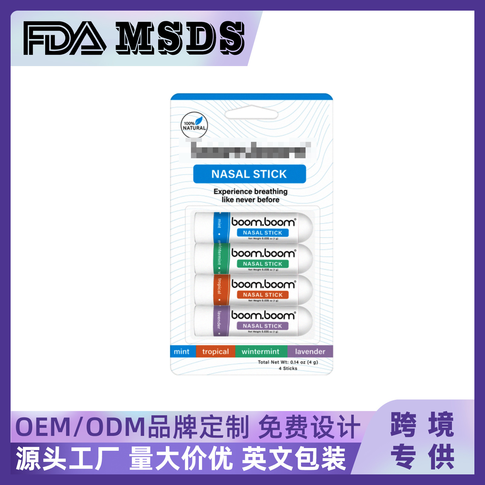 跨境亚马逊独立站boom提神醒脑防困清醒缓解鼻塞能力四只装鼻通灵