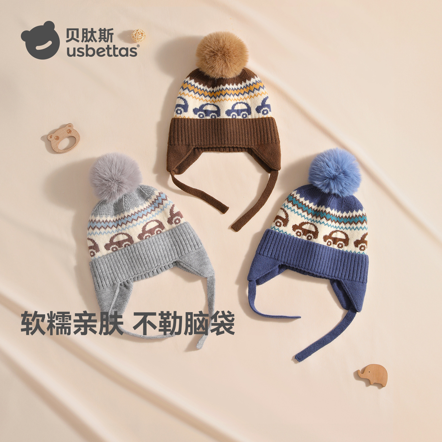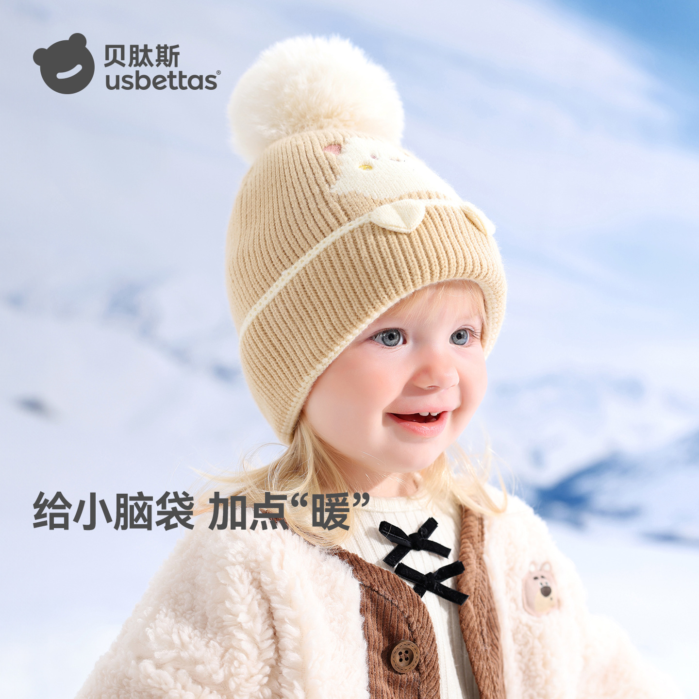 贝肽斯儿童帽子秋冬季2025新款男女宝宝毛线针织帽加厚防风护耳帽