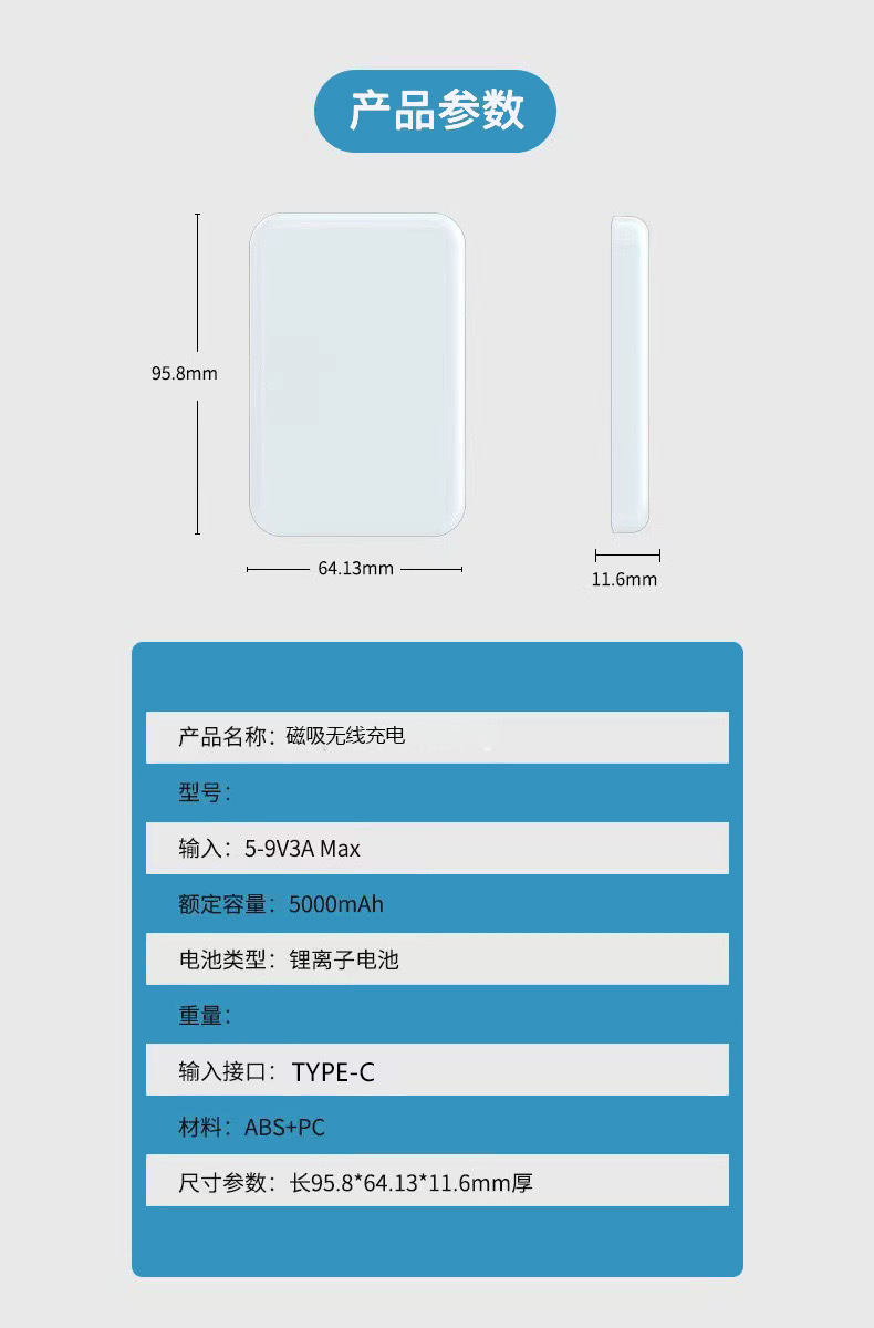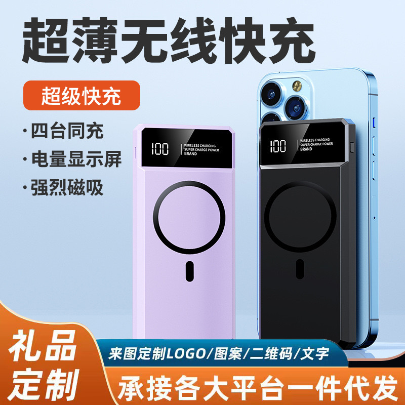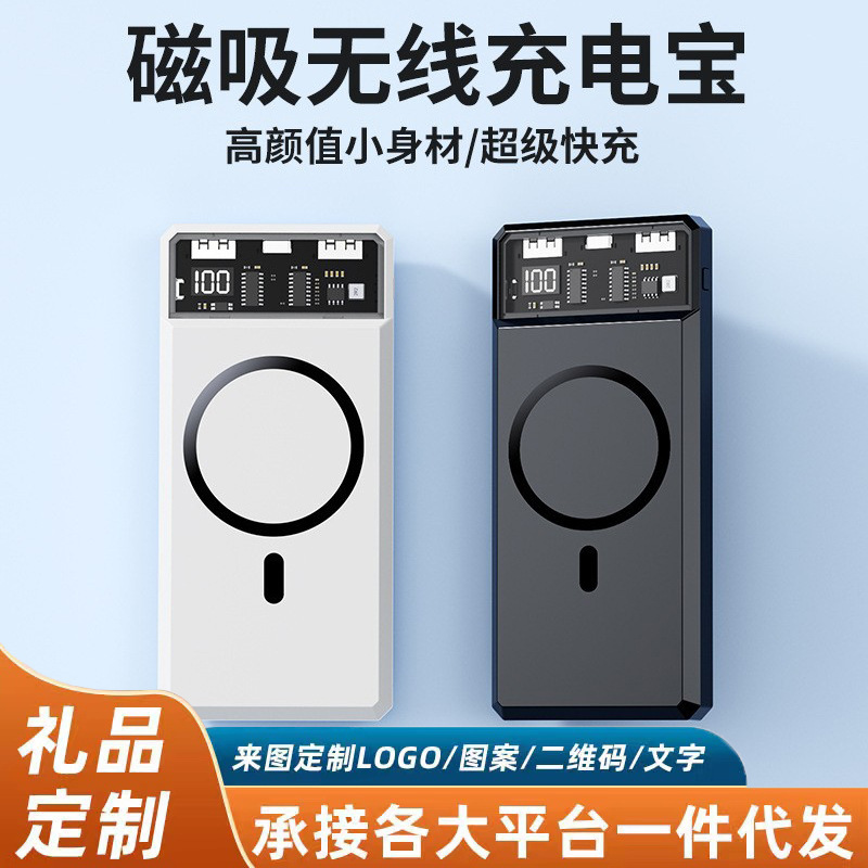 新型移動電源20000ミリアンペア磁気吸引可能無線充電超薄型大容量充電宝定ロゴ