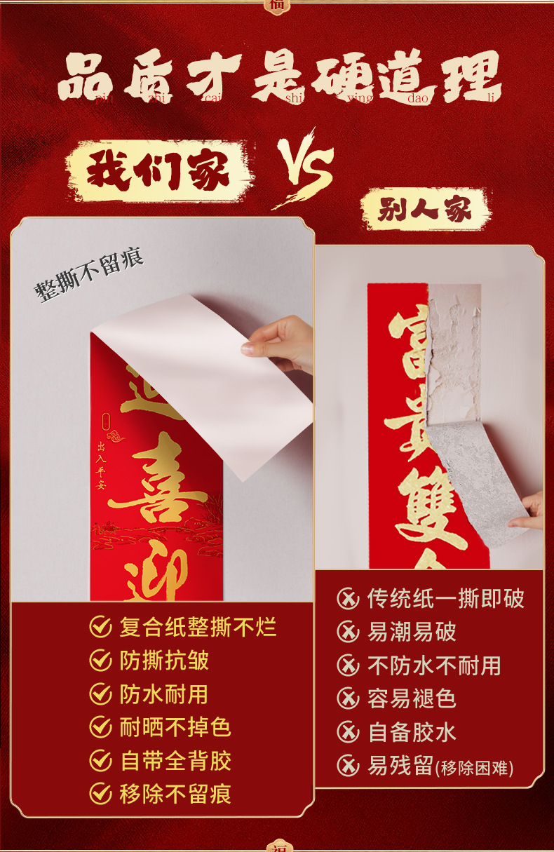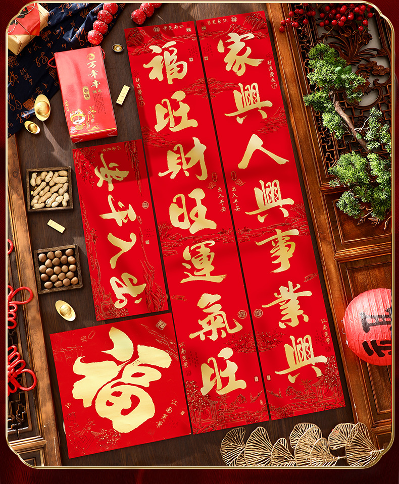 2026年春節用福字春聯、新年飾り、ドア装飾、春節用新デザイン、年賀グッズ、卸売、ドアステッカー