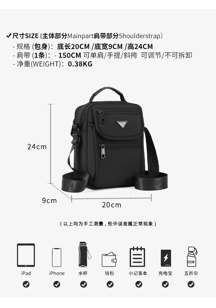カスタマイズされたメンズバッグ、カジュアルな多層縦型小型バッグ、軽量で多用途なショルダーバッグ、トレンディな撥水クロスボディバッグ