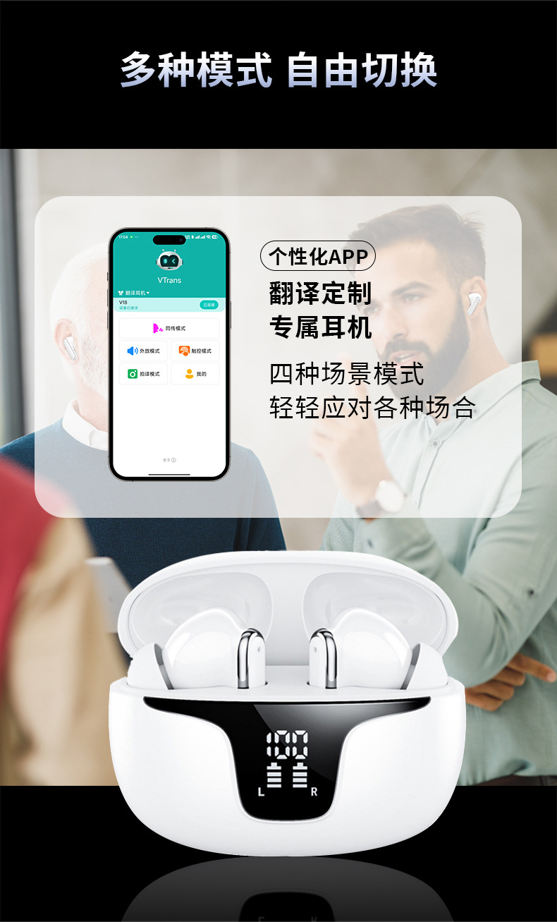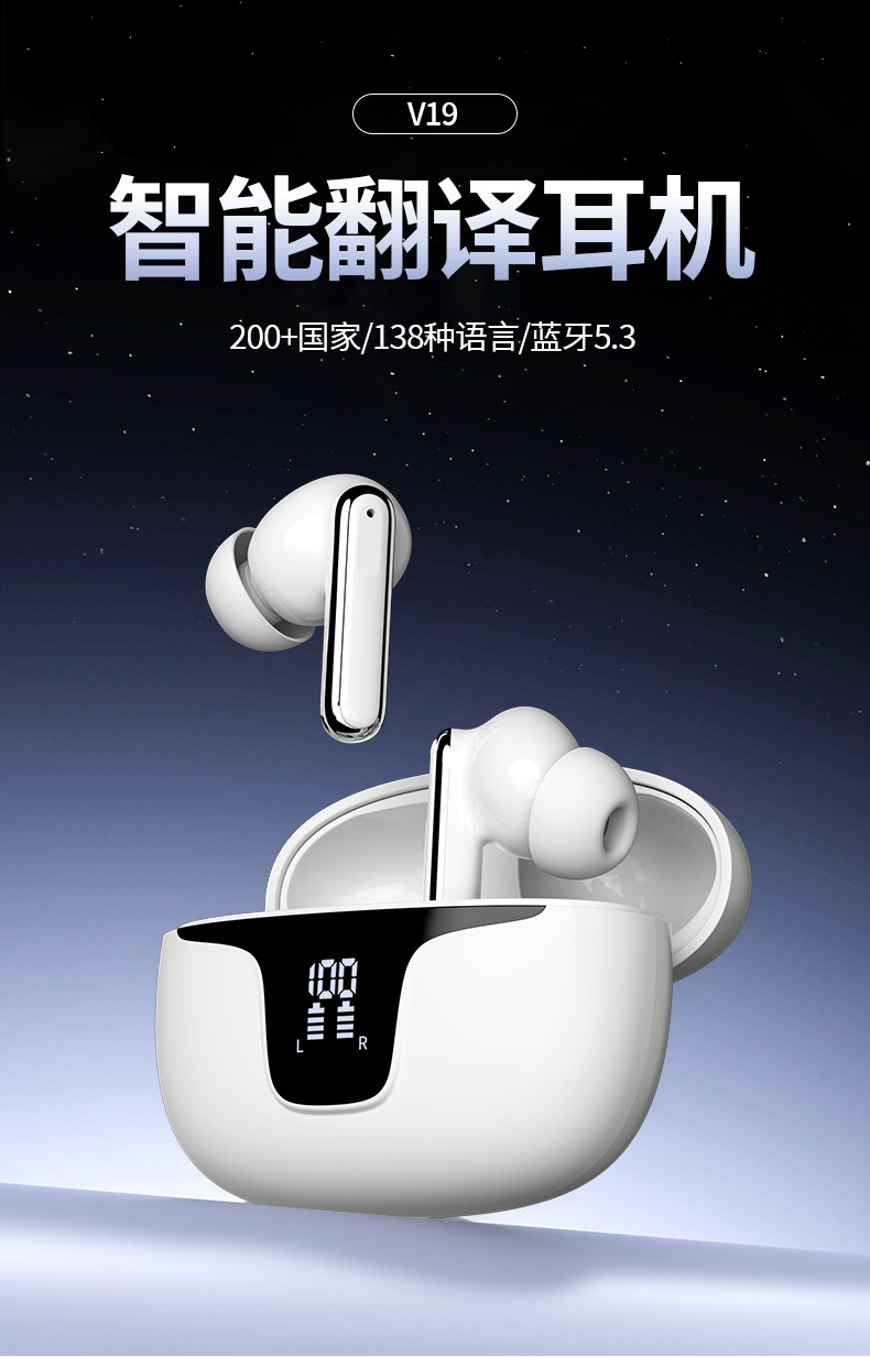 クロスボーダー V18 インテリジェント翻訳ヘッドセット 耳掛け式多言語同時通訳 リアルタイム外国貿易 Bluetooth 翻訳機