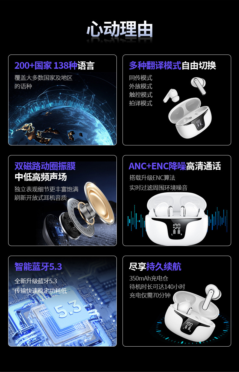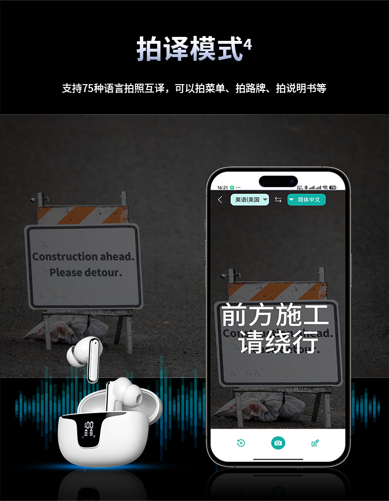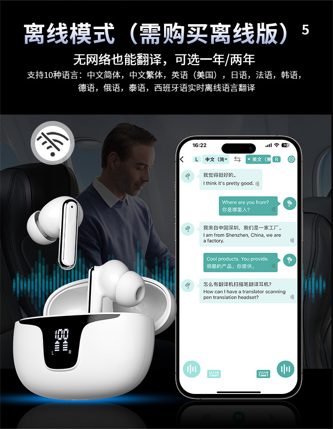 輸出対外貿易v 16知能翻訳イヤホン同時通訳多言語リアルタイムオフライン翻訳イヤホンbluetooth