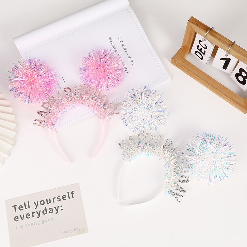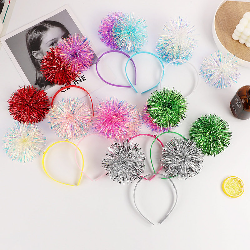 カラフルな明るいシルクファーボールヘアアクセサリー誕生日パーティーパフォーマンスパーソナライズされたレーザーヘッドバンドハロウィン子供の装飾ヘッドバンド